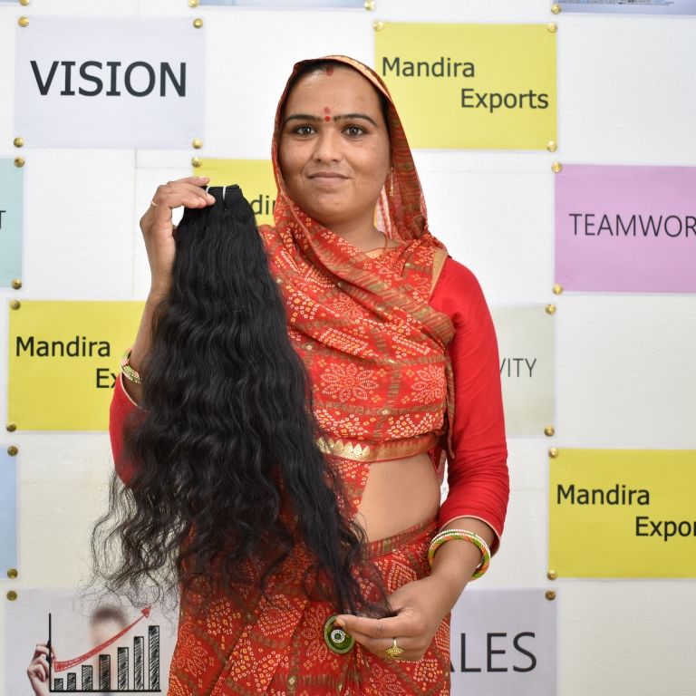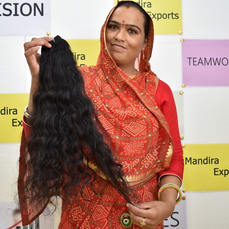 ผมชาวอินเดียแท้จากธรรมชาติผมแท้สีดำเป็นลอนใหญ่แบบหยักเป็นลอน