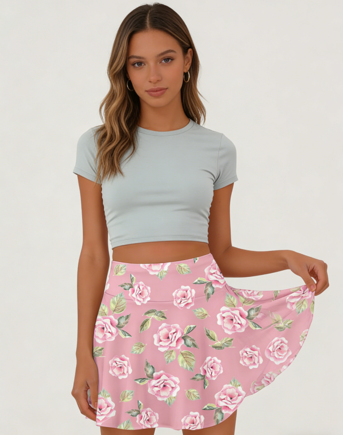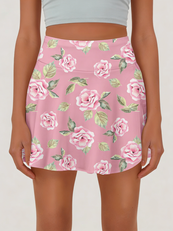 กระโปรงเทนนิสทรงเอไลน์เอวธรรมชาติสไตล์ลำลองสำหรับฤดูร้อน มีกระเป๋า สีชมพู พร้อมซับในป้องกันการเสียดสี ผลิตจากใยนม