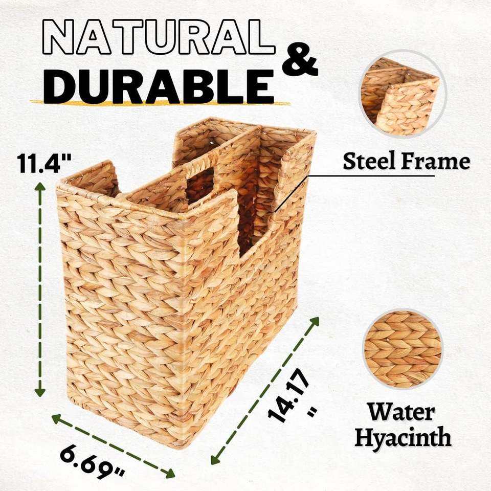 ตะกร้าหวายใส่นิตยสารผักตบชวาธรรมชาติชั้นวางของในหนังสือพิมพ์และที่ใส่เครื่องจักสานแบบบางสำหรับใส่หนังสือและแฟ้ม