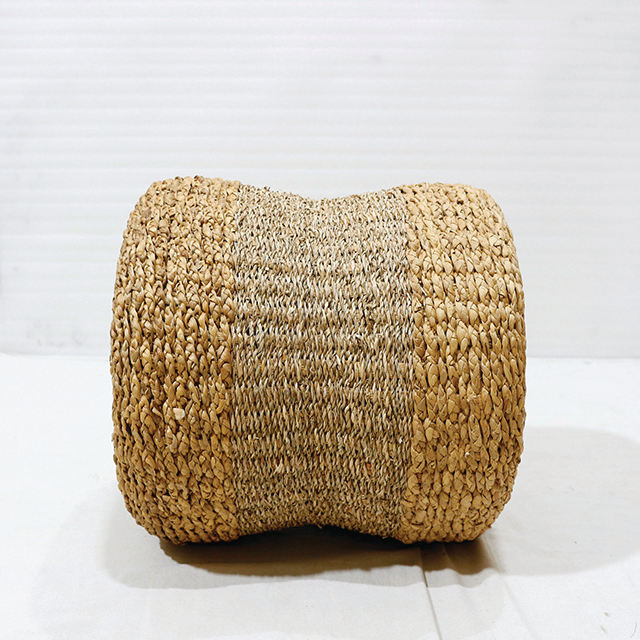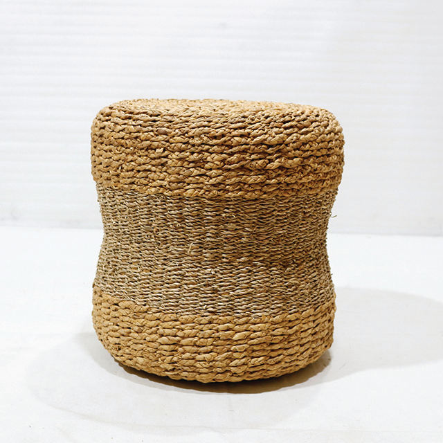 เก้าอี้พักเท้าทรงกลมสานจากผักตบชวาธรรมชาติ งานแฮนด์เมด สำหรับตกแต่งบ้านสไตล์โบโฮแบบเรียบง่าย