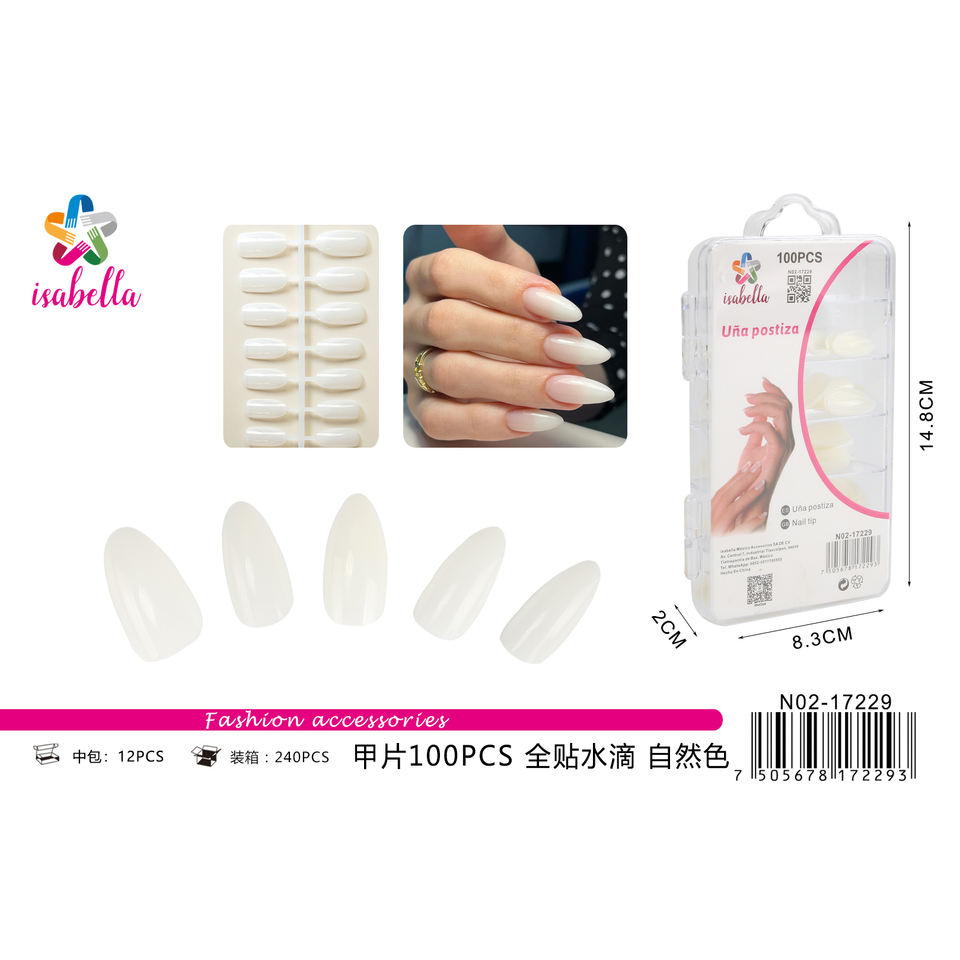 Natural Waterdrop 100-Piece Women's Fashionable Acrylic False Nails N02-17229 Stylish Elegant Manicure Accessory