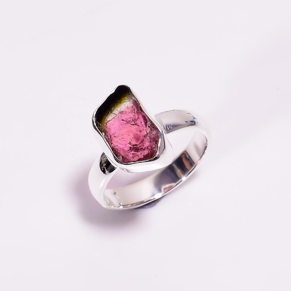 แตงโมพลอยทัวร์มาลีนธรรมชาติแหวนเงิน