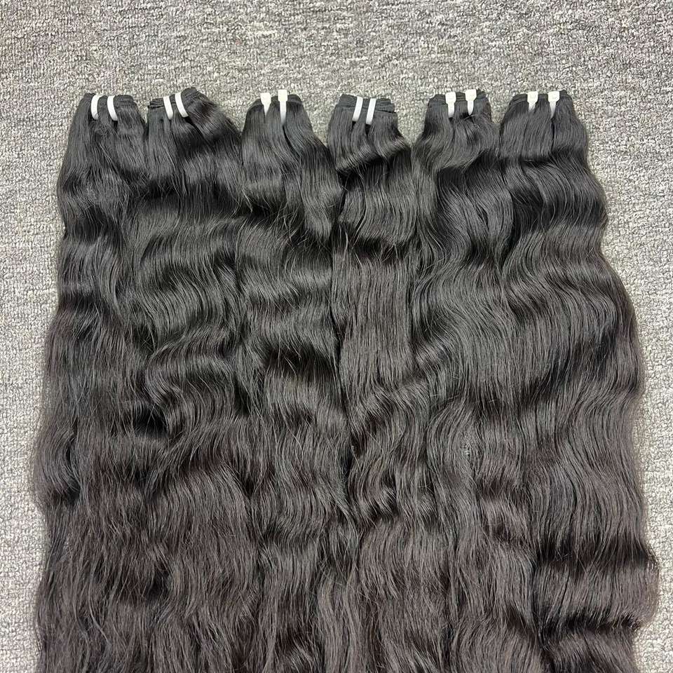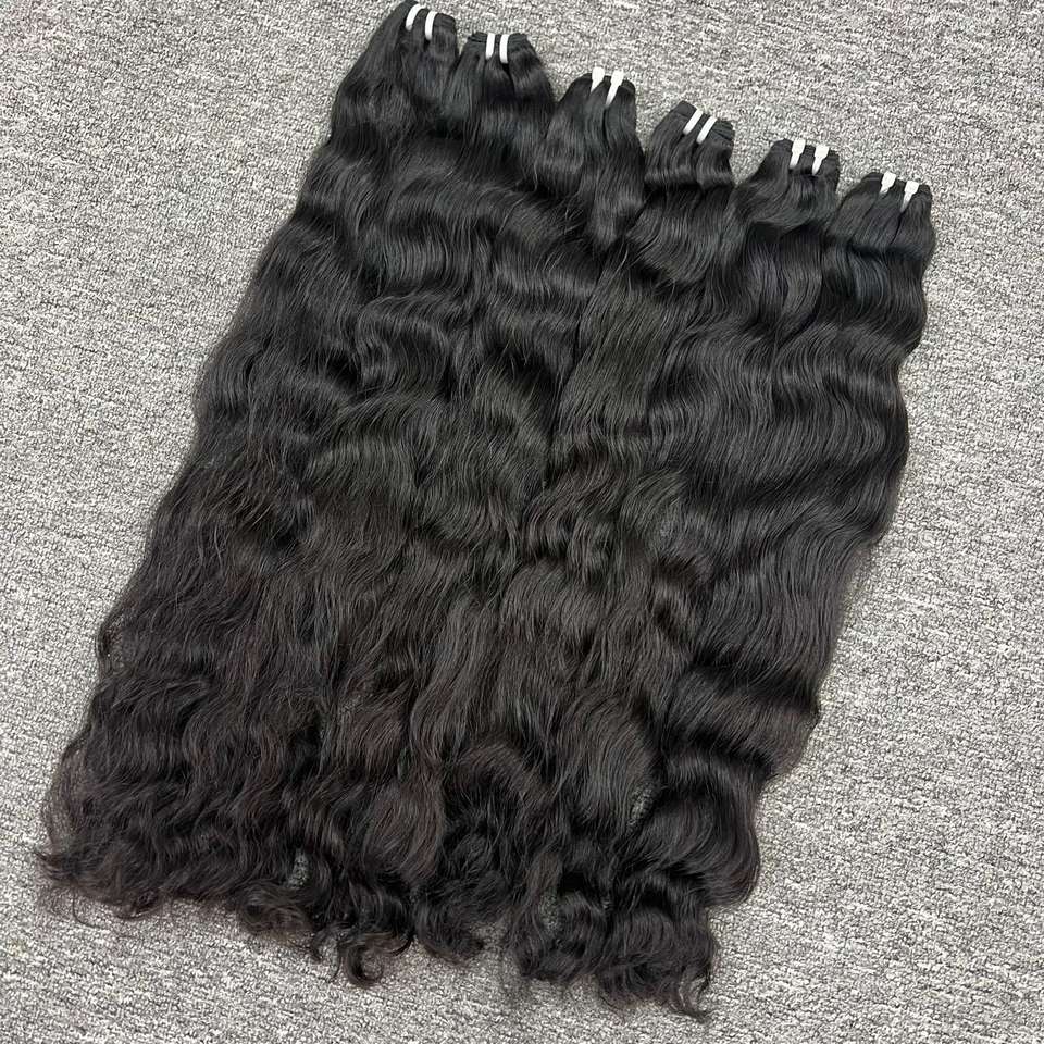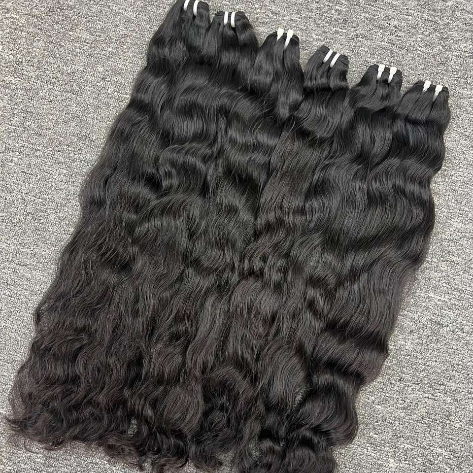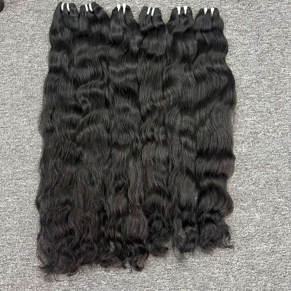 ผมต่อแบบเป็นลอนธรรมชาติ100% ผมแท้จากคนกัมพูชาเครื่องทอแบบไม่ Remy สองสีใช้ได้กับทุกสี
