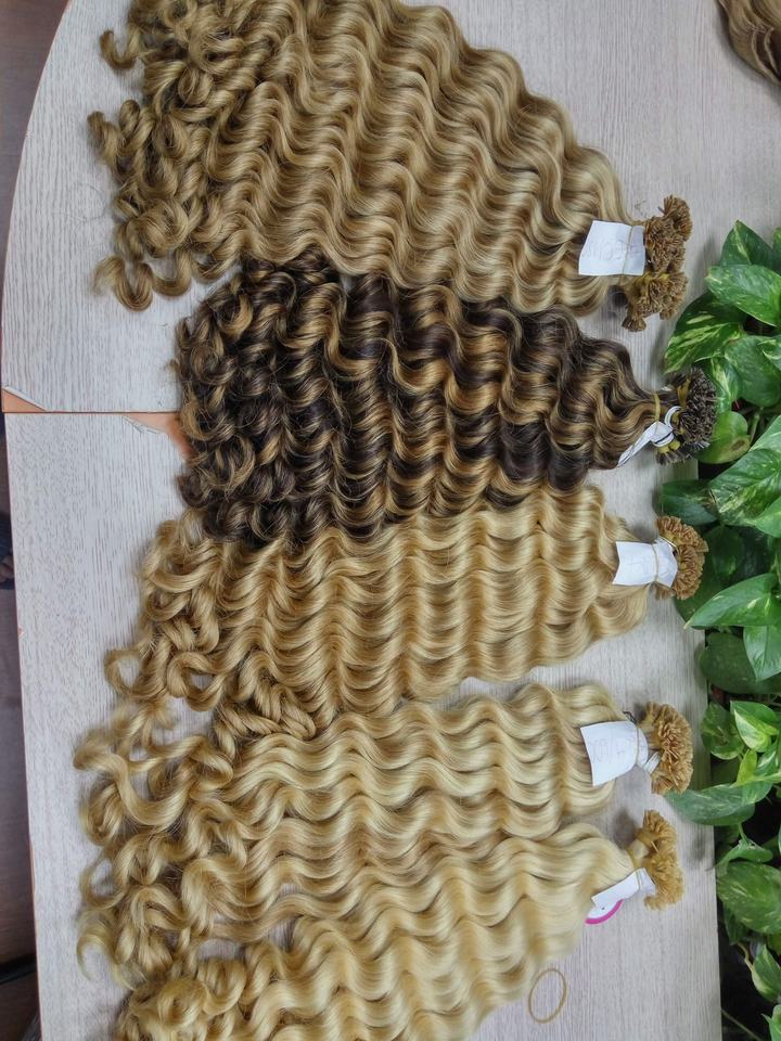 ผมต่อสีหยักศกธรรมชาติ-ผมมนุษย์แท้เรมี่ผมสีน้ำตาลและสีบลอนด์100% มาใหม่