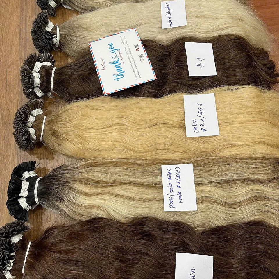 ผมต่อปลายแบนเป็นลอนแบบธรรมชาติผมต่อแบบเคราตินปลายผมคนเวียดนามผมปลายแหลม