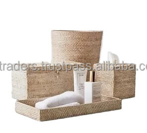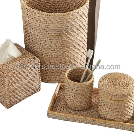 ชุดอุปกรณ์อาบน้ำหวายสไตล์ชนบทสำหรับห้องน้ำชุดเครื่องหวายสุดหรูของคอลเลกชั่นห้องน้ำ