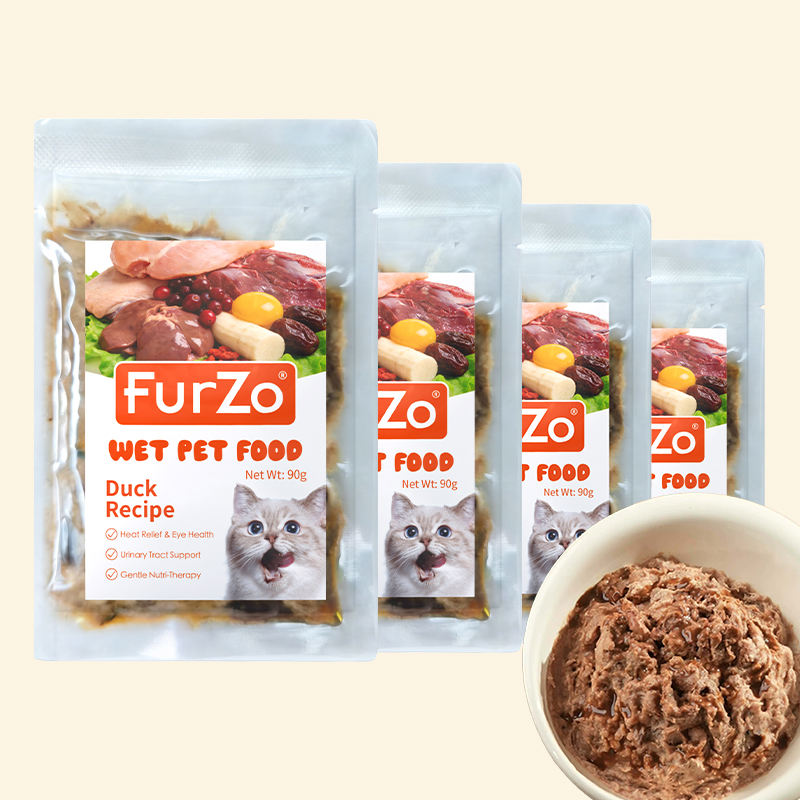 อาหารแมวเปียกธรรมชาติ ส่วนผสมจำกัด ไม่มีธัญพืช โปรตีนสูง เนื้อวัว เป็ด นกพิราบ ไก่ ขนมแมวเพื่อสุขภาพผิวหนัง