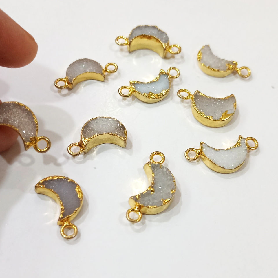 กำไลข้อมือดรูซี่มูนสีขาวธรรมชาติขนาด11-12มม. เครื่องประดับทองเหลืองทรงสูงตัวเรือนแฟนซีสำหรับทำเครื่องประดับขายต่อชิ้น