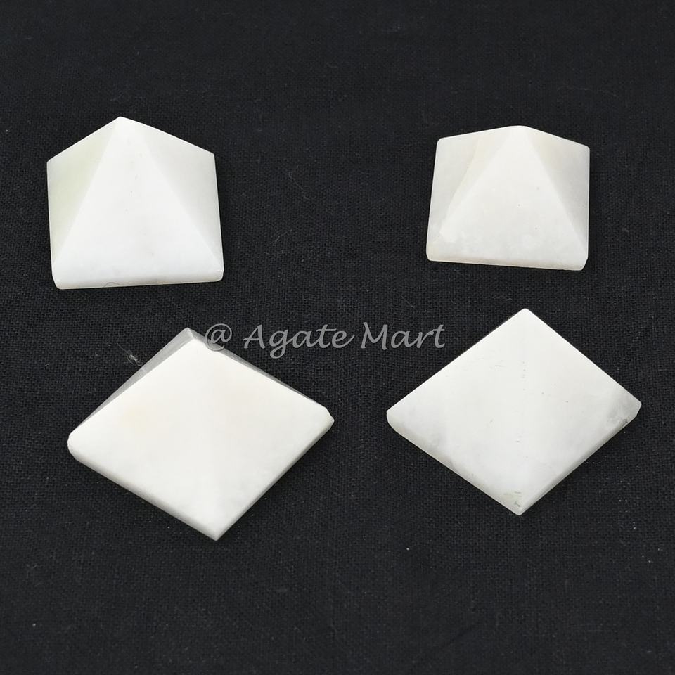 หินโมราธรรมชาติสีขาวพีระมิดคริสตัลขนาดเล็กรูปพีระมิดบำบัดสำหรับตกแต่งบ้าน