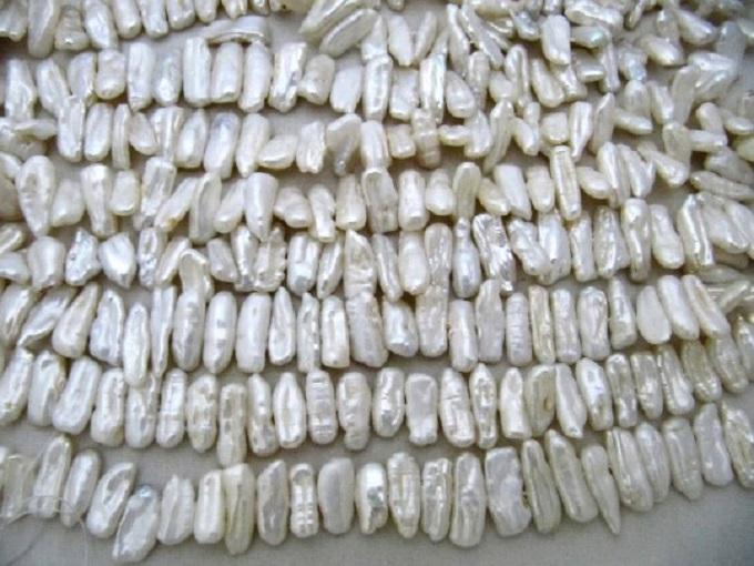 ลูกปัดไข่มุกบิวะสีขาวธรรมชาติรูปทรงแฟนซีลูกปัด16ถึง20มม. ขายต่อเส้นยาว34นิ้ว