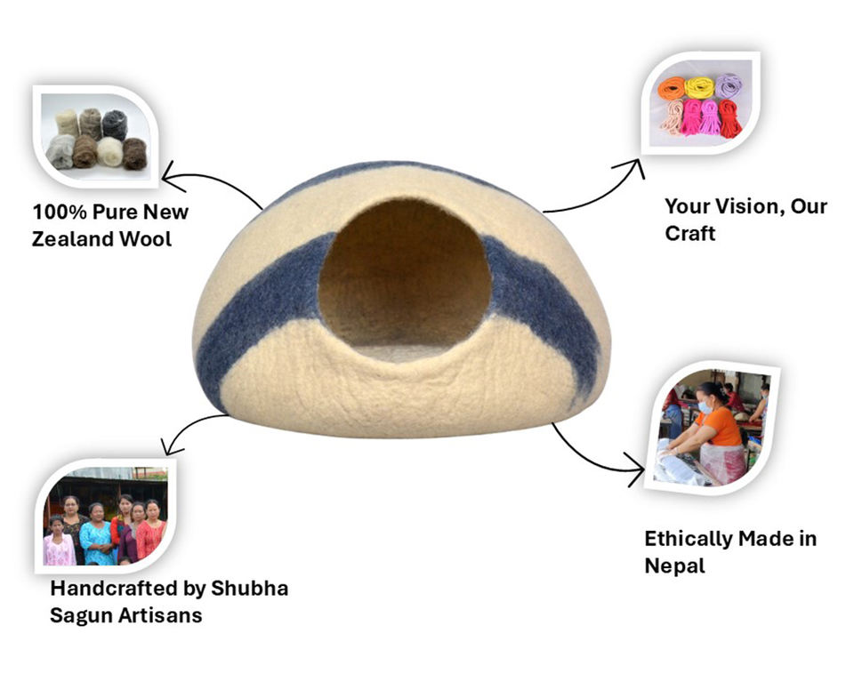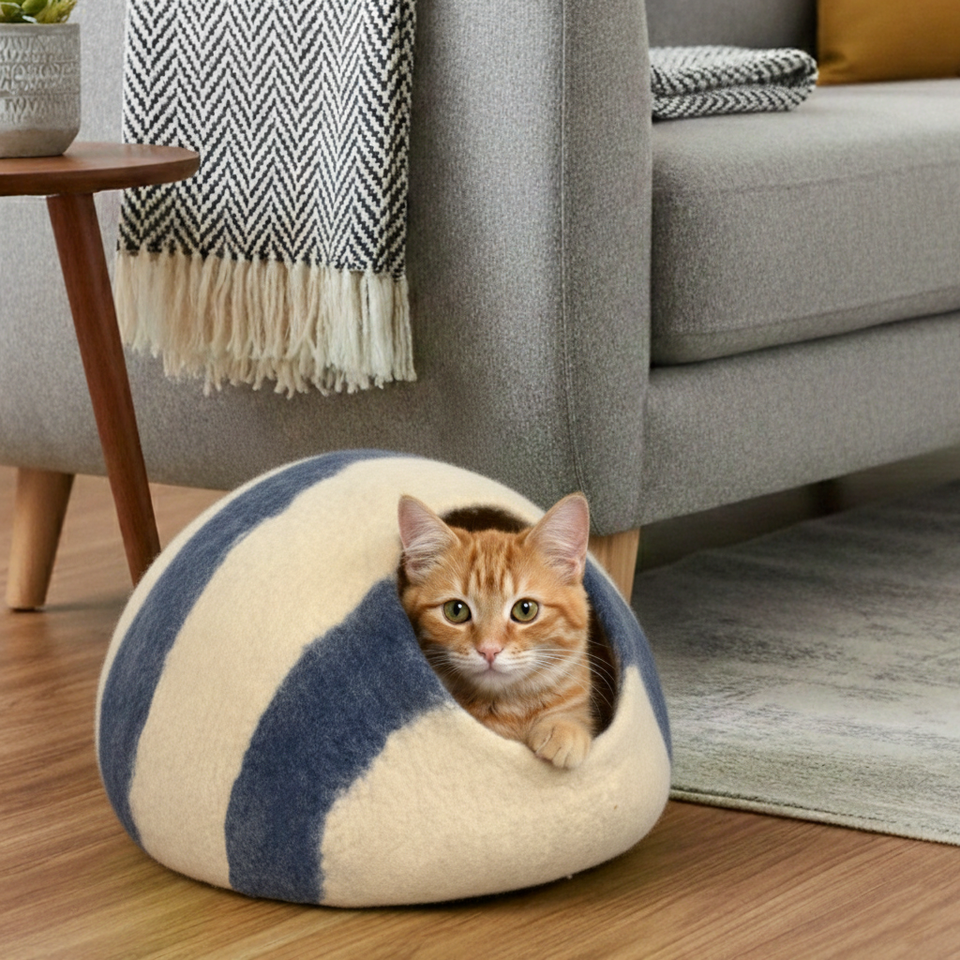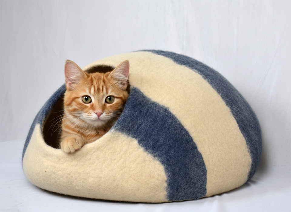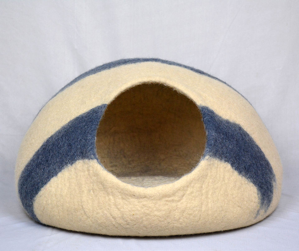 ที่นอนแมวทำจากผ้าสักหลาดขนสัตว์สีขาวฟ้าธรรมชาติ - บ้านสัตว์เลี้ยงในร่มแบบปิดที่เป็นมิตรกับสิ่งแวดล้อม | บ้านสัตว์เลี้ยงแสนสบาย