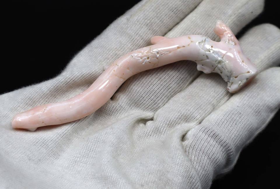 ปะการังสีขาวธรรมชาติญี่ปุ่นอัญมณีหลวมผิวนางฟ้าขัดปะการังทำเครื่องประดับขนาด102X13MM