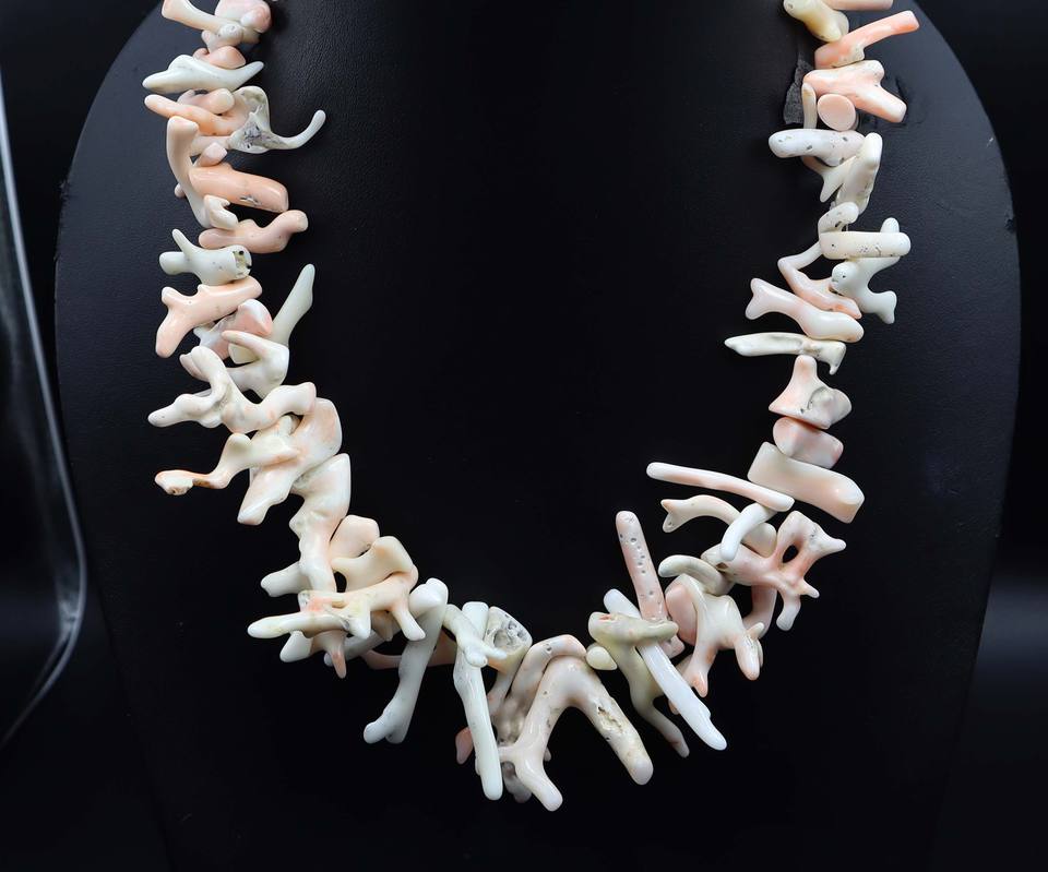 สร้อยคอทรงแท่งปะการังสีขาวธรรมชาติสร้อยคอปะการังสีขาวสไตล์ญี่ปุ่นลูกปัดปะการังขัดเงา