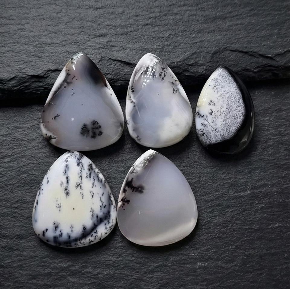 โอปอลเดนไดรต์สีขาวธรรมชาติ รูปทรงลูกแพร์ พลอยหลวมคุณภาพสูง ของแท้ จำนวนมาก พร้อมการประเมินโดยบุคคลที่สาม ขายส่ง