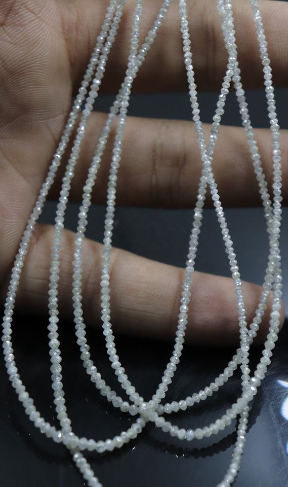 ลูกปัดเพชรทรงรอนเดลเหลี่ยมเพชรพลอยสีขาวธรรมชาติ ขนาด 2.2 มม. ยาว 16 นิ้ว ลูกปัดหินเหลี่ยมเพชรพลอย ลูกปัดเพชรทรงรอนเดลสีขาว