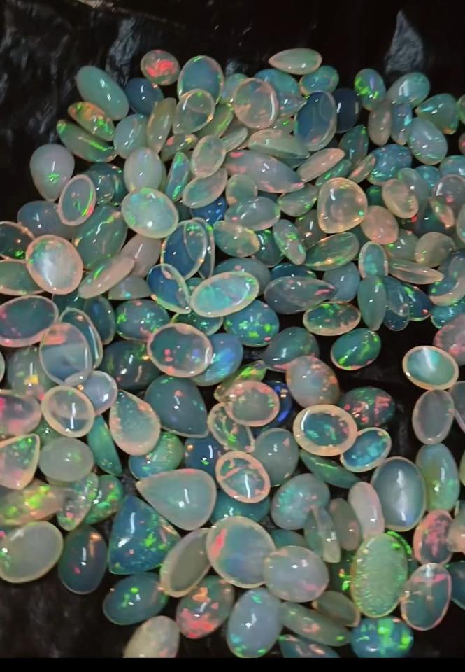 พลอยอัญมณีเอธิโอเปียสีขาวธรรมชาติสีรุ้งมูนสโตนตัดทรงไข่อัญมณีหลวมสำหรับทำเครื่องประดับ