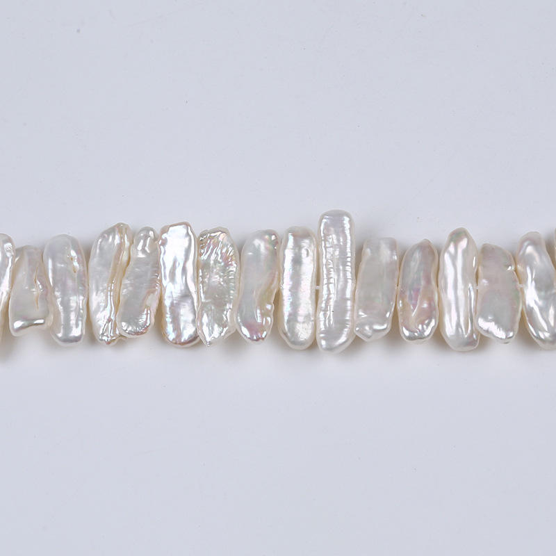 ลูกปัดมุกน้ำจืดสีขาวธรรมชาติทรงบาร็อคแบบปิปา ร้อยเป็นสาย มีรูด้านข้าง สำหรับทำสร้อยคอและกำไล DIY
