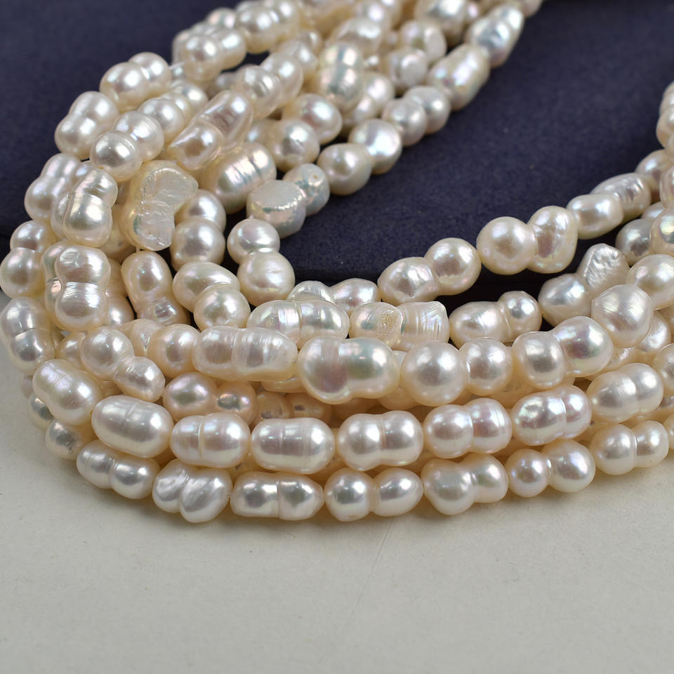 ลูกปัดมุกน้ำจืดทรงบาร็อคสีขาวธรรมชาติ รูปทรงเลข 8 ขนาด 7-11-14 มม. อุปกรณ์กึ่งสำเร็จรูป สำหรับทำสร้อยคอ