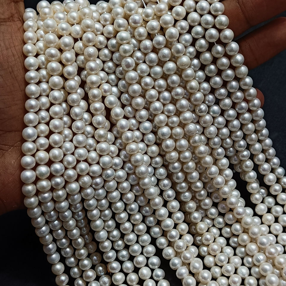หินไข่มุกน้ำจืดสีขาวธรรมชาติลูกปัดกลมเรียบจากผู้ค้าส่งไข่มุกสำหรับทำเครื่องประดับและทำมาลา