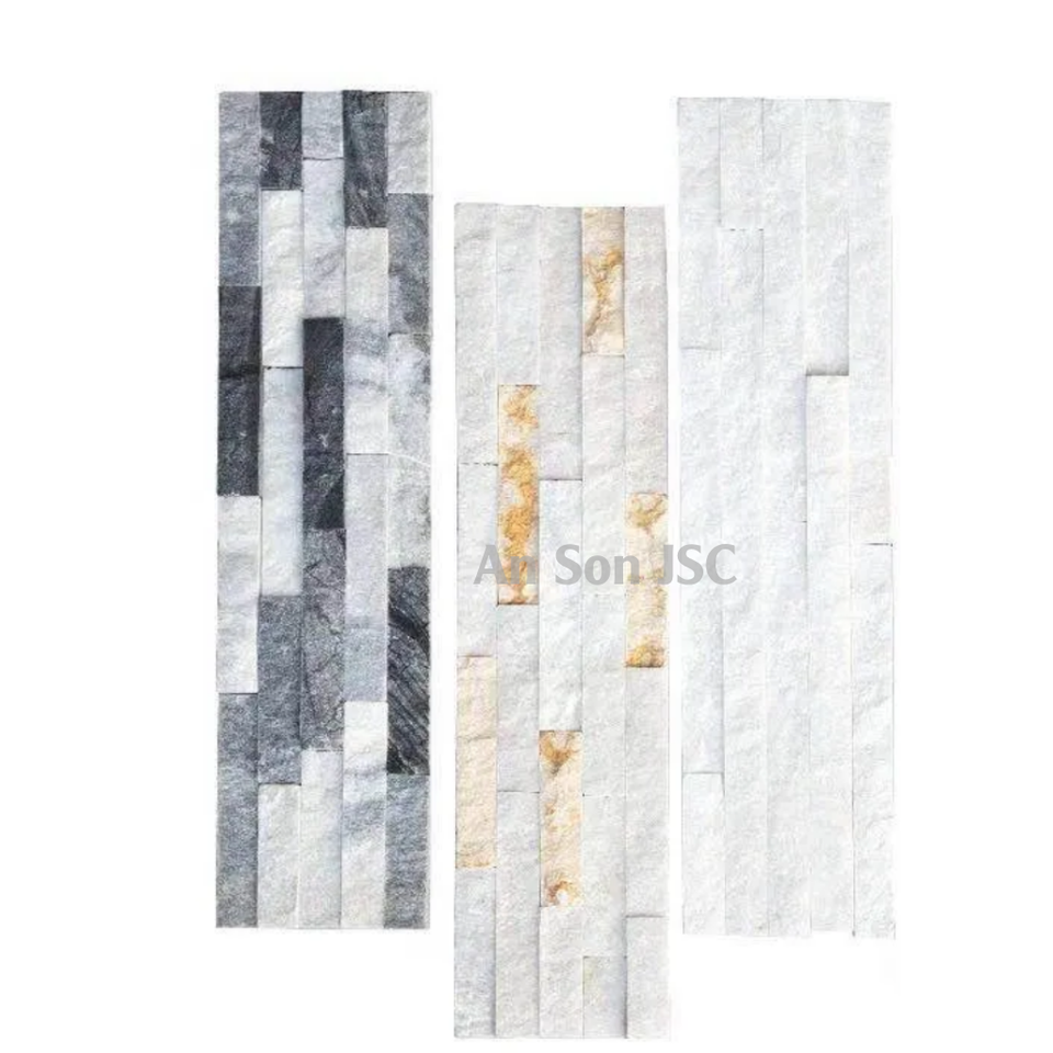 แผ่นหินอ่อนสีขาวธรรมชาติสำหรับบุผนัง แบบหน้าตัด แผ่นกระเบื้องหินหรูหราสำหรับตกแต่งผนังภายนอกและภายใน สำหรับวิลล่าและโรงแรม
