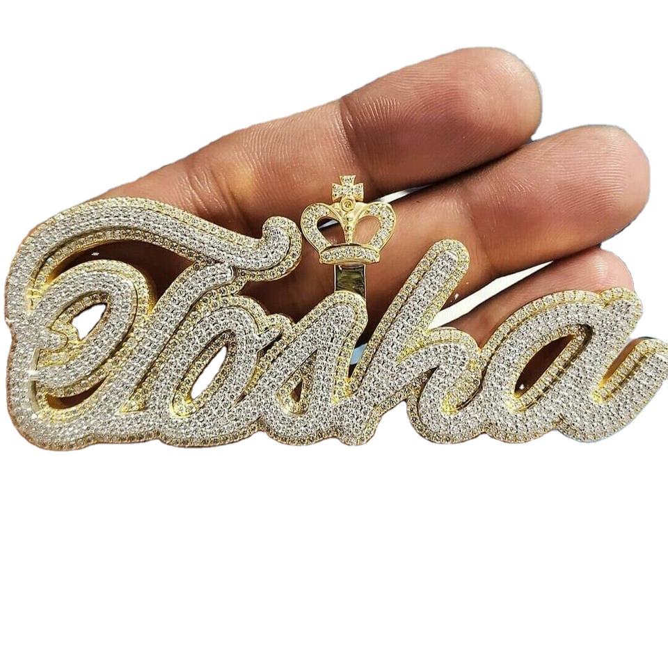 จี้ชื่อเพชร Moissanite สีขาวธรรมชาติพร้อมจี้ฮิปฮอปตัวอักษรเงินแท้ 925 สั่งทําพิเศษจากที่นี่