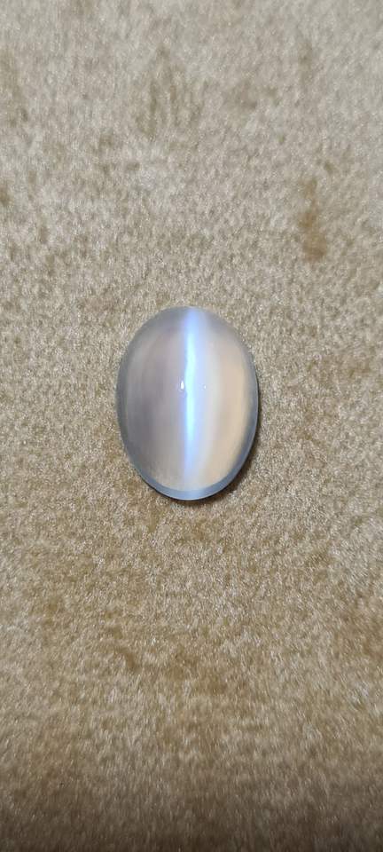 พลอยมูนสโตนสีขาวธรรมชาติทรงแคทอายรูปไข่