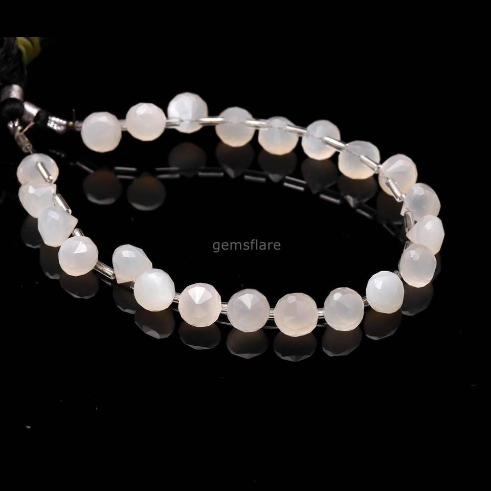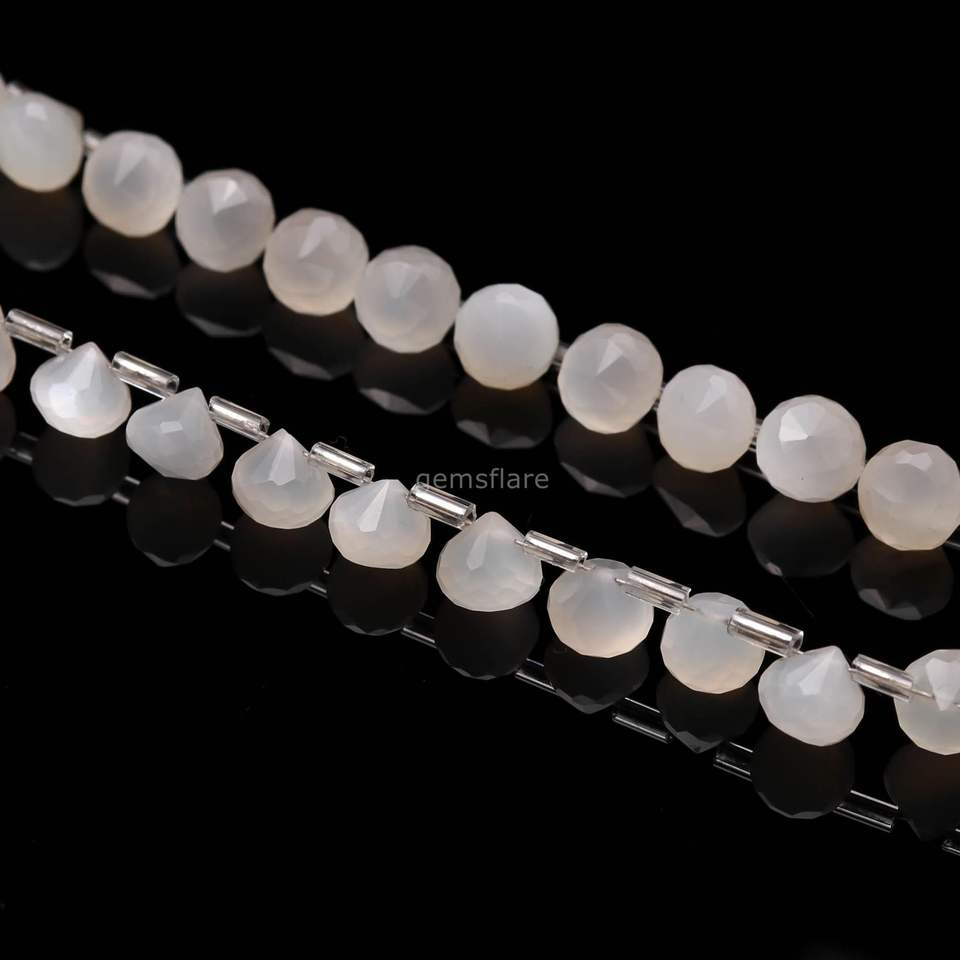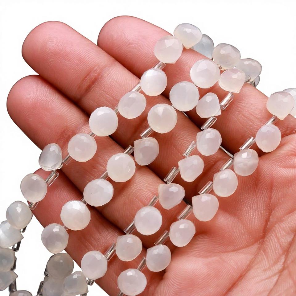 ลูกปัดมูนสโตนสีขาวธรรมชาติทรงหัวหอมเหลี่ยมเพชรพลอย ขนาด 7-9 มม. ลูกปัดมูนสโตนทรงหยดน้ำเหลี่ยมเพชรพลอย สำหรับทำเครื่องประดับ