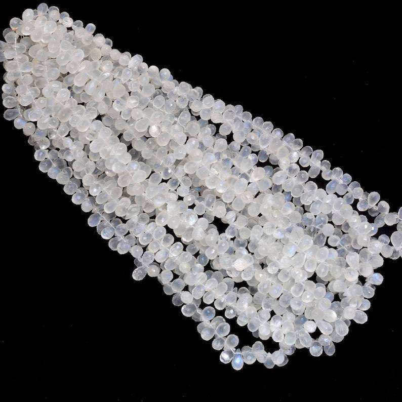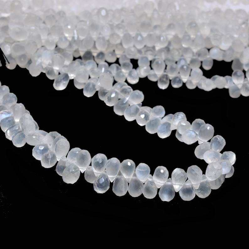 มูนสโตนสีขาวธรรมชาติทรงหยดน้ำเหลี่ยมเพชรพลอยขนาด 7x5 มม. เม็ดพลอยหลวมสำหรับทำเครื่องประดับ ขายส่งเม็ดมูนสโตนจำนวนมาก