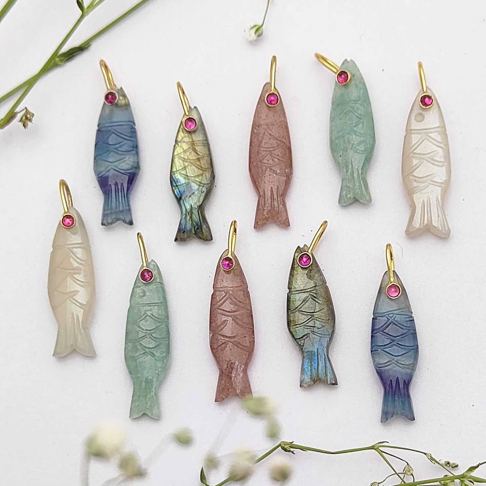 Product Name:Natural Gemstone Fish Pendant
