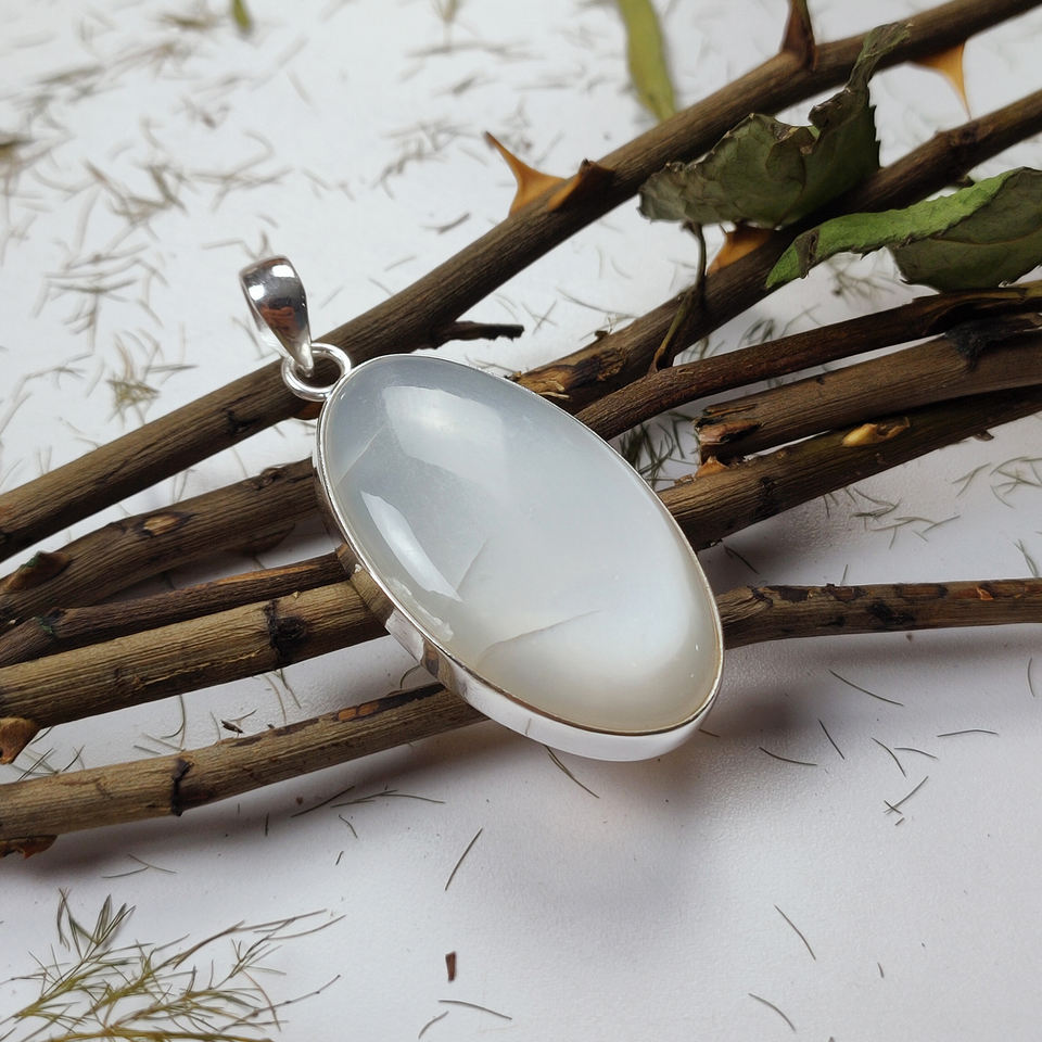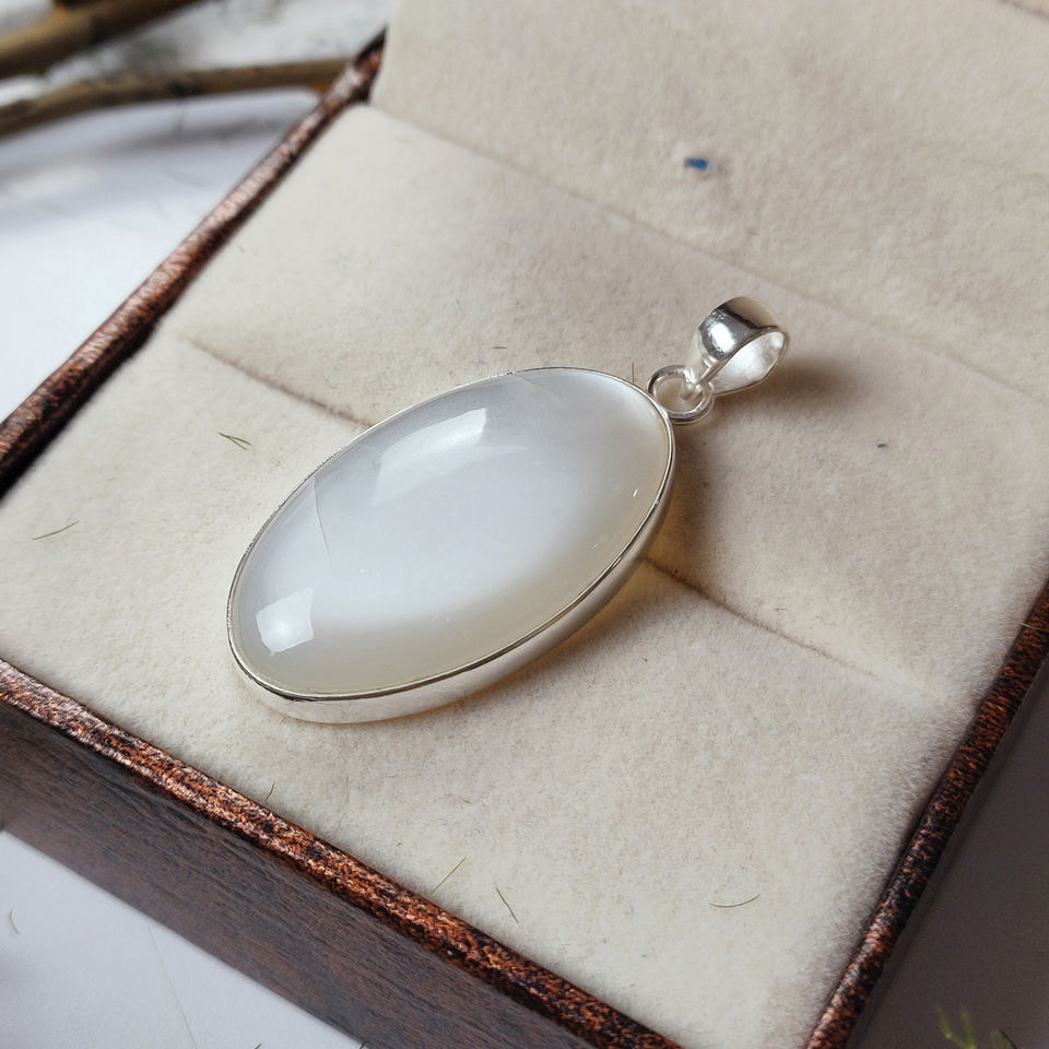 จี้มูนสโตนสีขาวธรรมชาติทรงรี เงินแท้ 925 สร้อยคอพลอยทำมือสำหรับผู้หญิง ขายส่ง