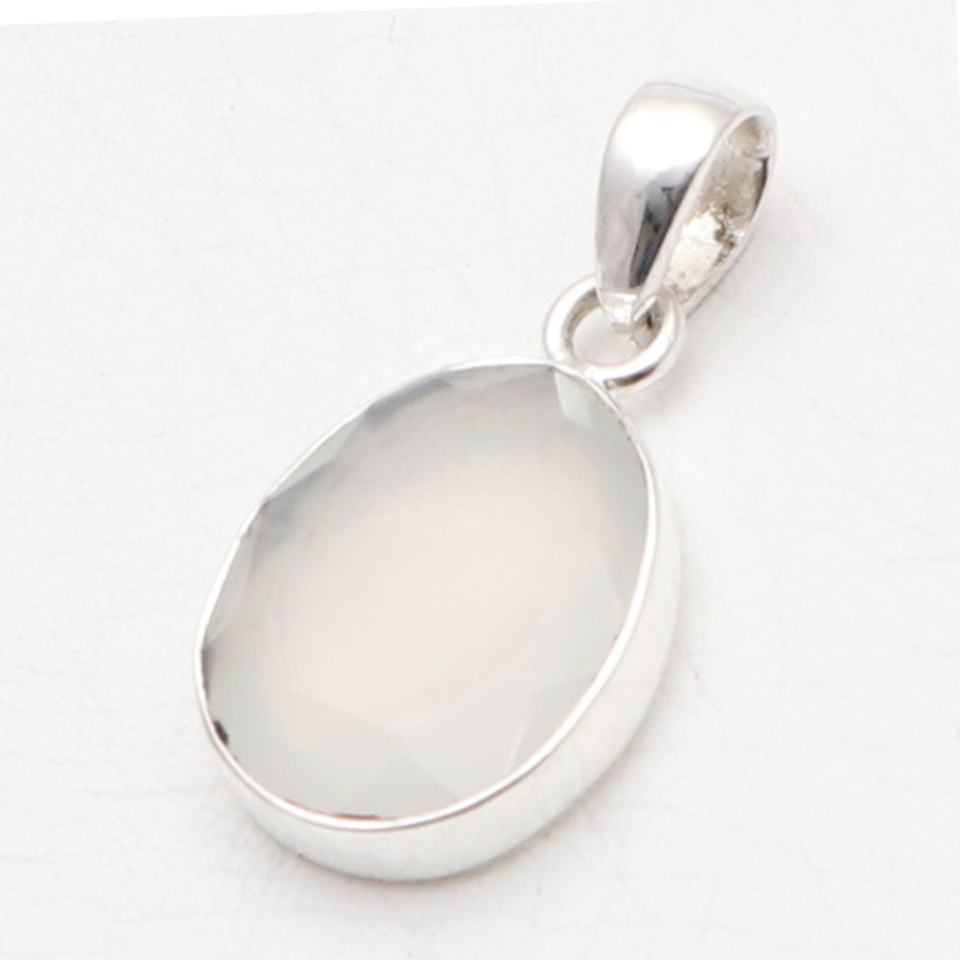 จี้หินพระจันทร์สีขาวธรรมชาติรูปไข่ทรงเสน่ห์และสร้อยคอชุบเงิน Collet การตั้งค่าจี้เครื่องประดับค้นพบผู้ผลิต