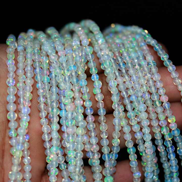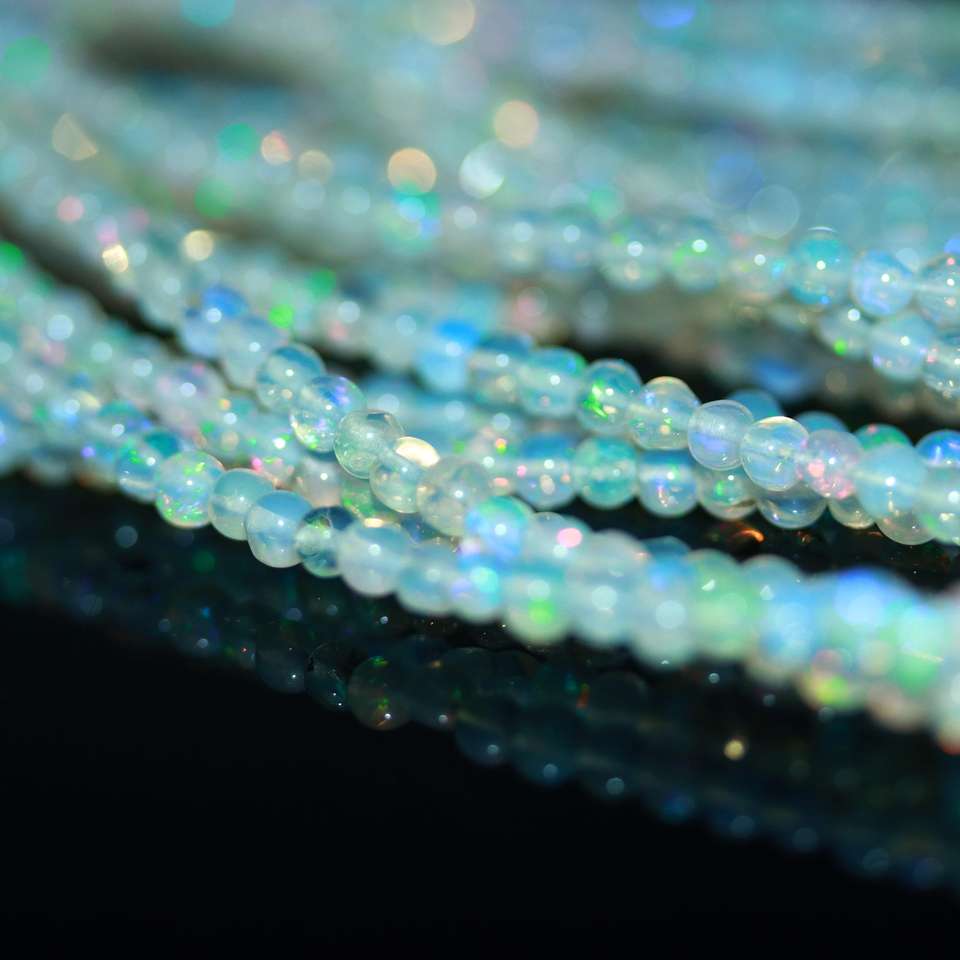 อัญมณี:ลูกปัดโอปอลสีขาวทรงกลมแบบร้อยเป็นสาย