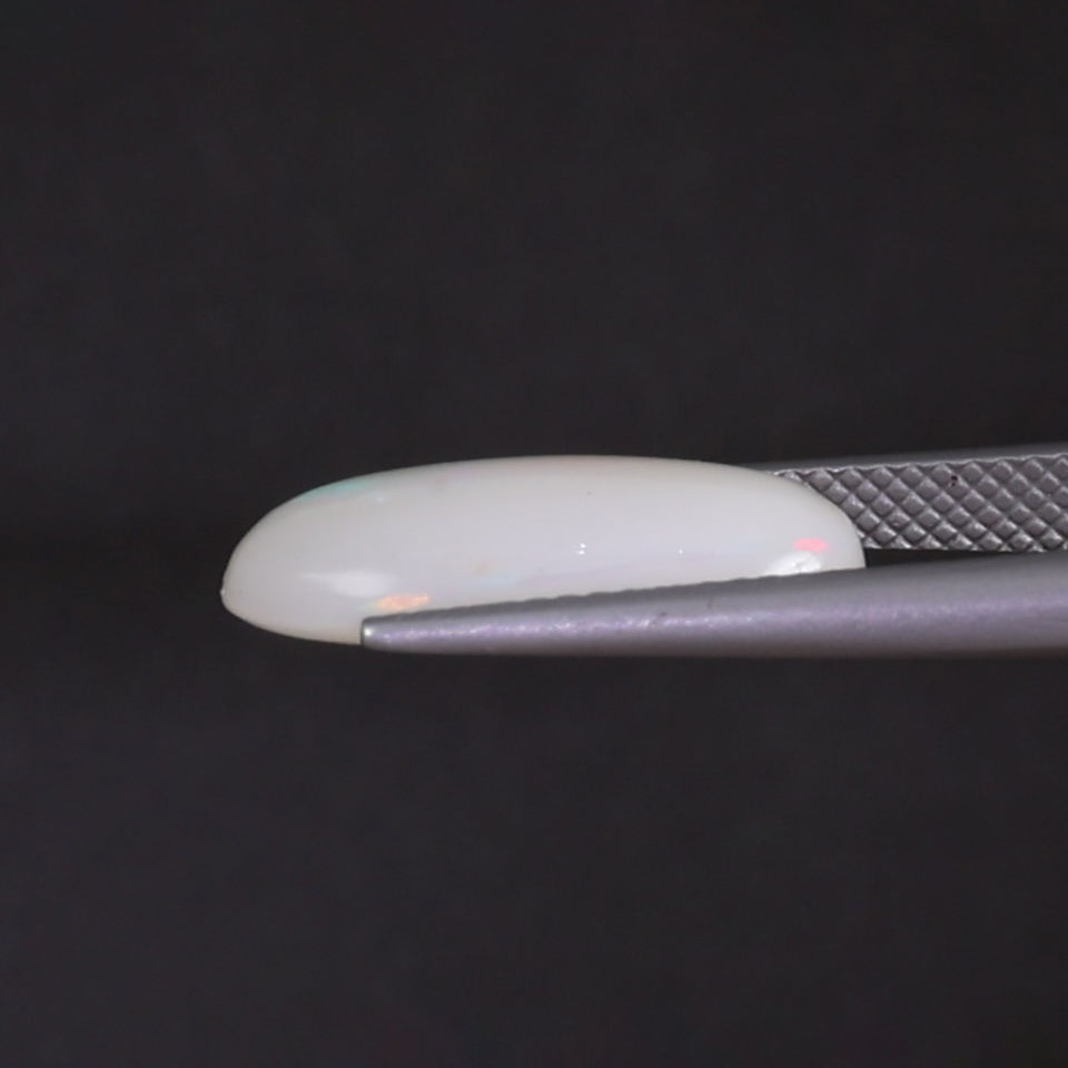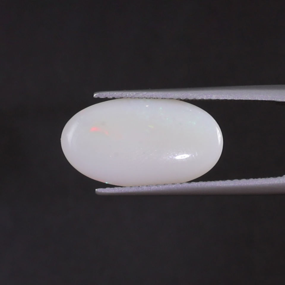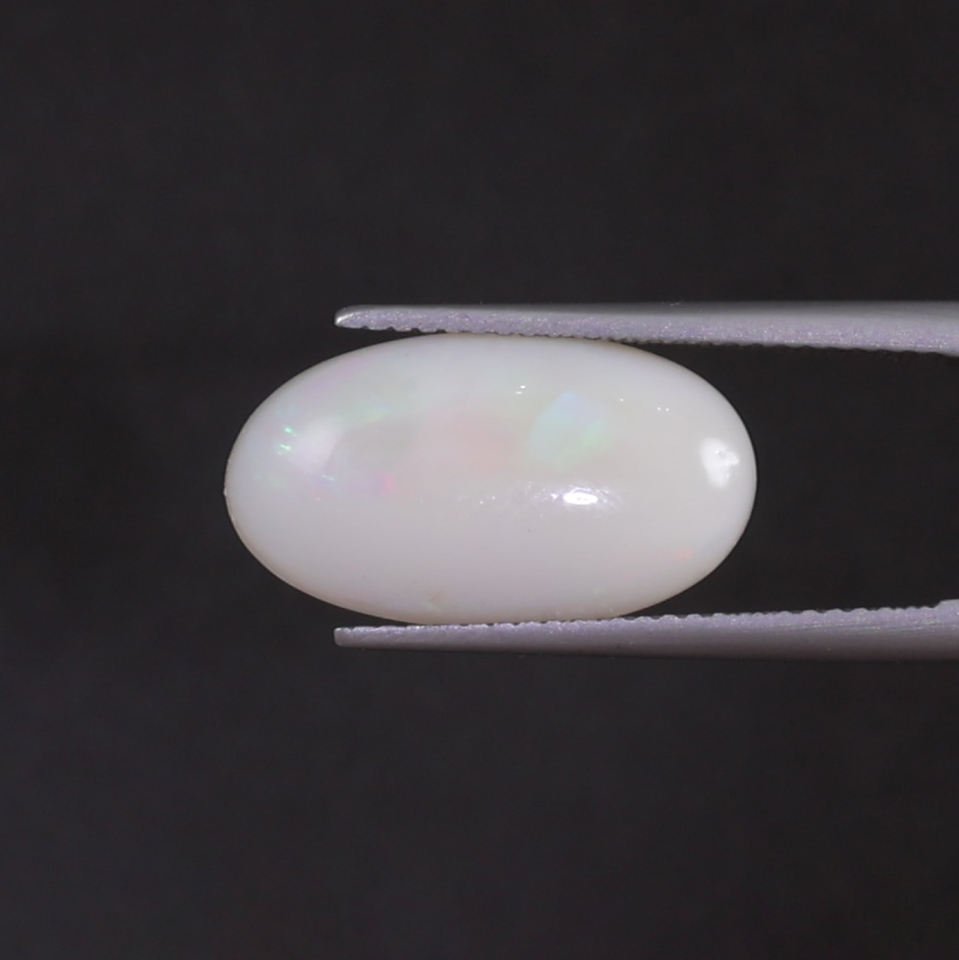 โอปอลสีขาวธรรมชาติ รูปไข่ 4.97 กะรัต ขนาด 18x10 มม. ได้รับการรับรองจาก IGI ขัดเงาด้วยมือ ผ่านการเคลือบแว็กซ์/น้ำมัน