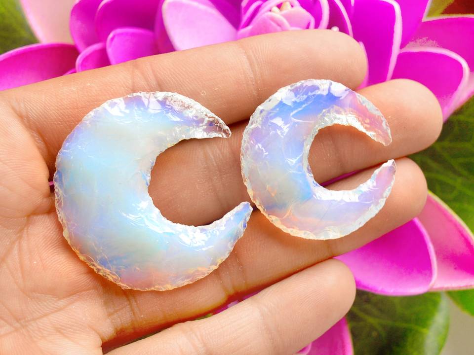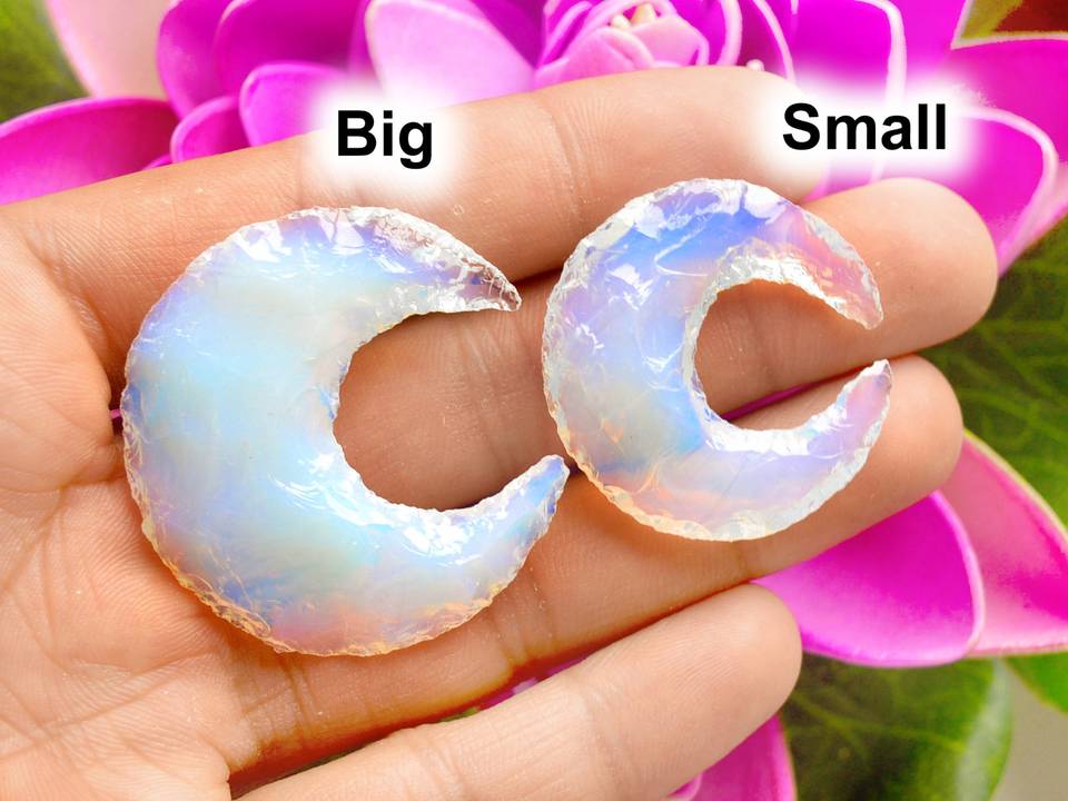 จี้คริสตัลรูปพระจันทร์โอปอลสีขาวธรรมชาติอัญมณีอัญมณีทรงหลวมประดับเพชรแกะสลักรูปพระจันทร์เสี้ยว