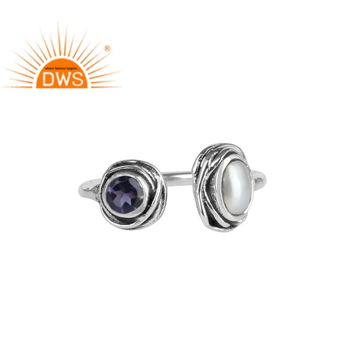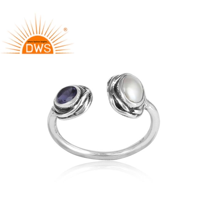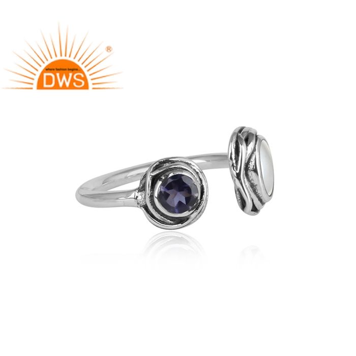 ธรรมชาติสีขาวมุกข้อควรระวังและ Iolite พลอย925สเตอร์ลิงแหวนปรับเครื่องประดับผู้ค้าส่ง