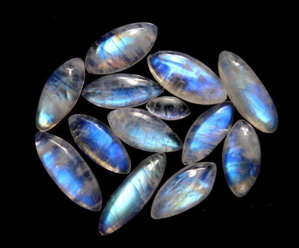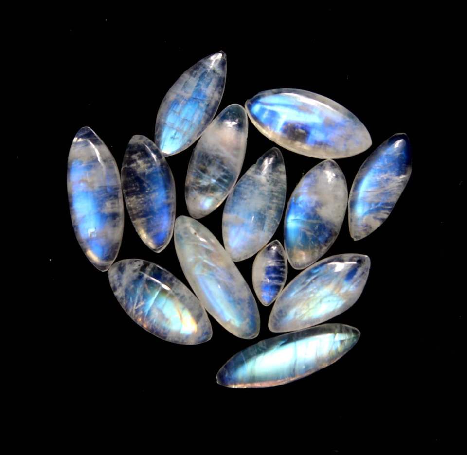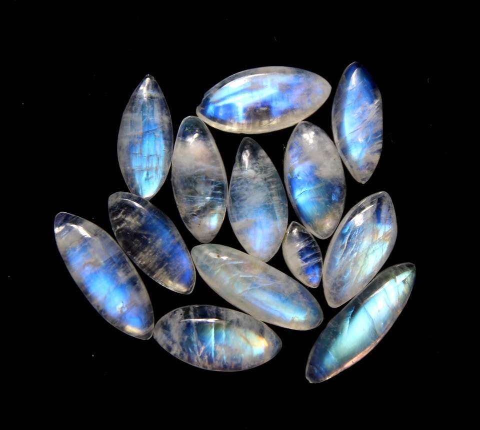 พลอยมูนสโตนสีรุ้งธรรมชาติอัญมณีหลวมตัดเรียบสำหรับทำเครื่องประดับ