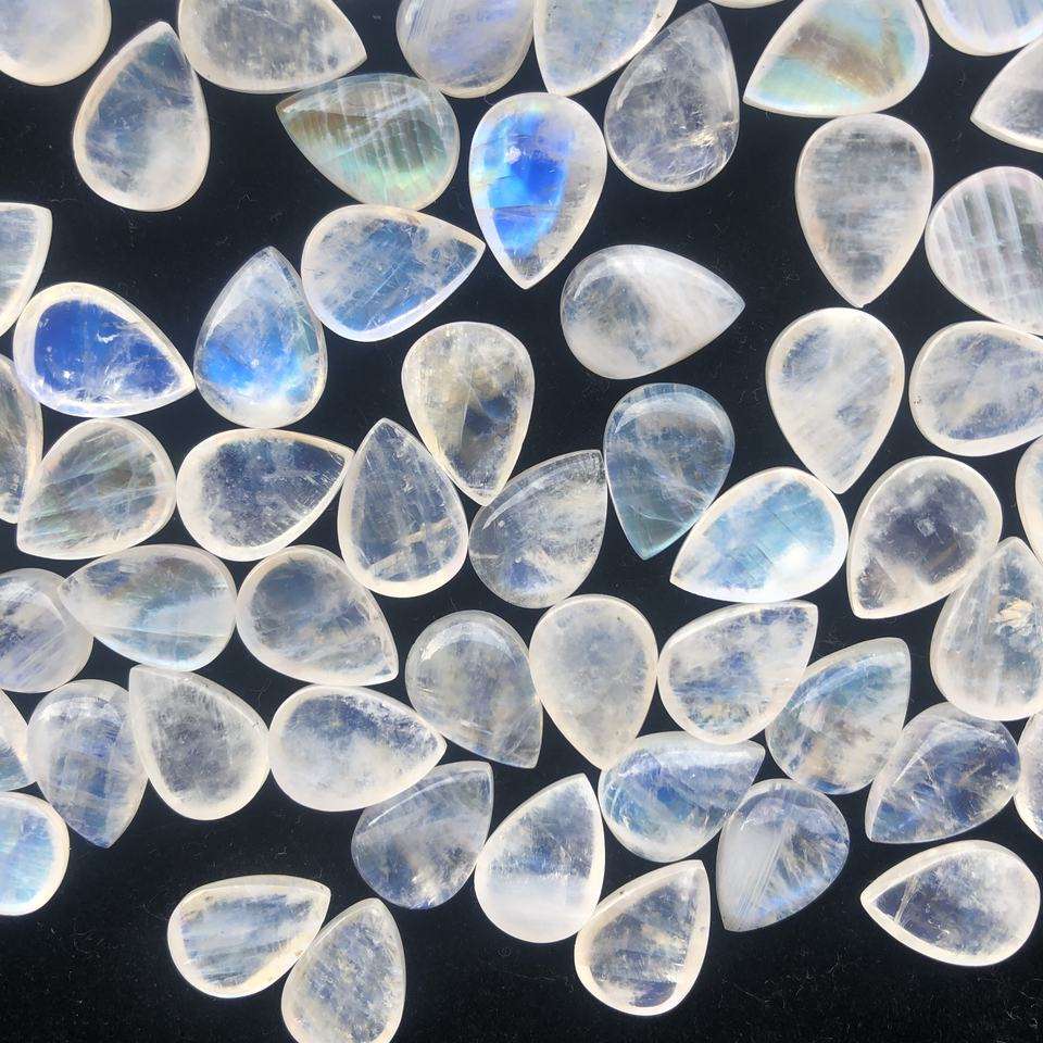มูนสโตนสีขาวธรรมชาติทรงลูกแพร์ เรียบเนียน ขนาดมาตรฐาน รับรองโดย IGI สำหรับทำเครื่องประดับ ราคาโรงงานขายส่ง