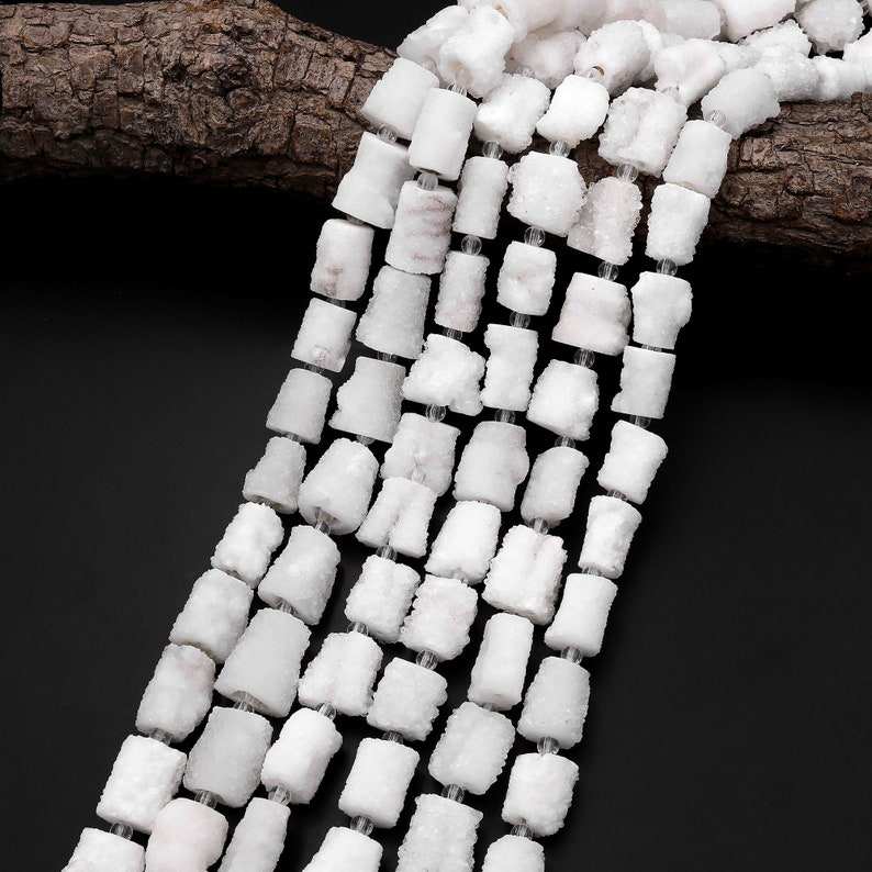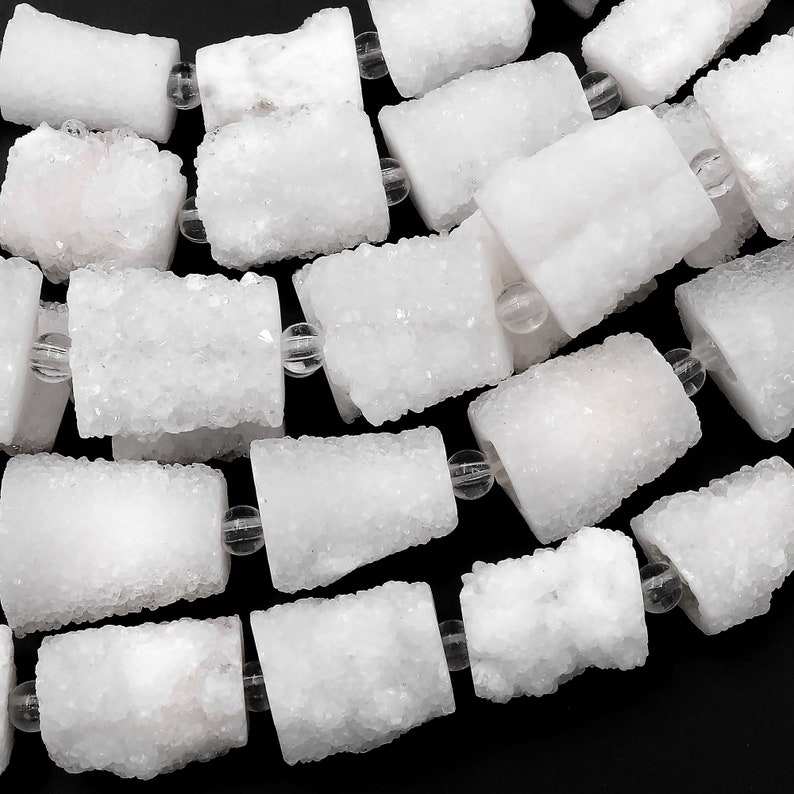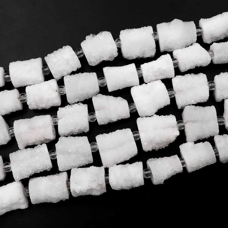 ลูกปัดคริสตัลทรงกระบอกสีขาวธรรมชาติแบบดรูซี่เจาะรูตรงกลาง ขายส่งแบบเส้นเต็ม