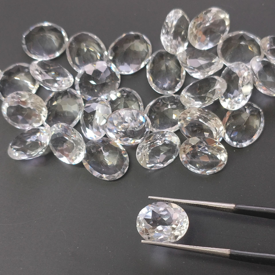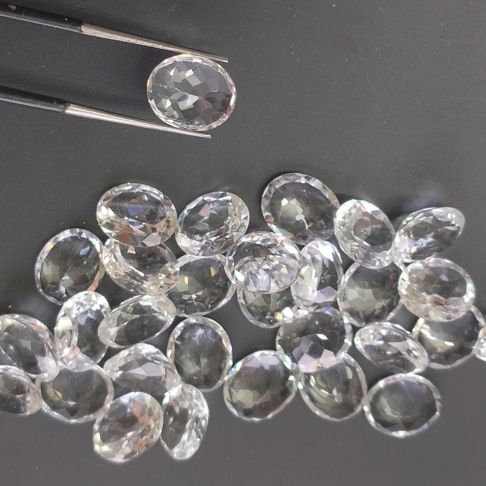 โทแพซสีขาวธรรมชาติ ขนาด 12x10 มม. ทรงรี คุณภาพดีที่สุด ตัดแต่งแล้ว สำหรับทำเครื่องประดับดีไซเนอร์