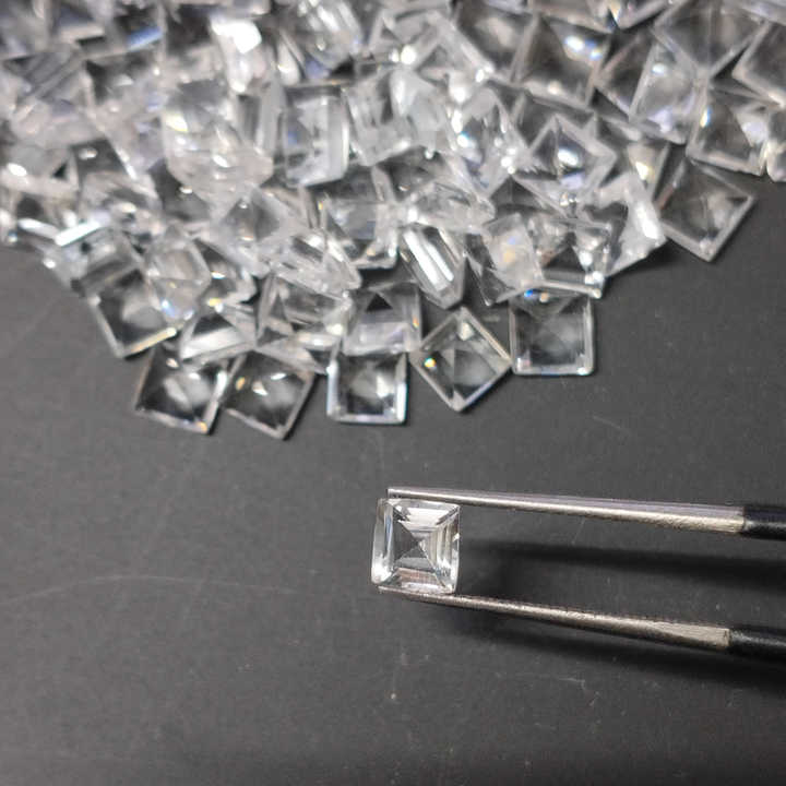 โทแพซสีขาวธรรมชาติ 5 มม. ทรงสี่เหลี่ยมเจียระไนแบบสเต็ปคัต คุณภาพดีที่สุด สำหรับทำเครื่องประดับ