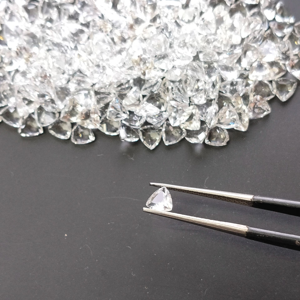 โทแพซสีขาวธรรมชาติ 5 มม. ทรงทริลเลียนคัต คุณภาพดีที่สุด สำหรับทำเครื่องประดับ