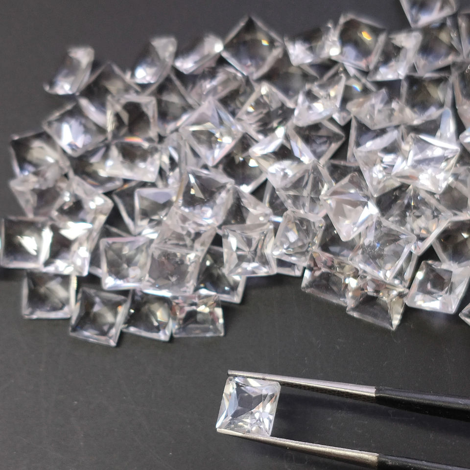 โทแพซสีขาวธรรมชาติ 6 มม. ทรงสี่เหลี่ยมเจ้าหญิงคัท คุณภาพดีที่สุด พลอยเม็ดเดี่ยวสำหรับทำเครื่องประดับ