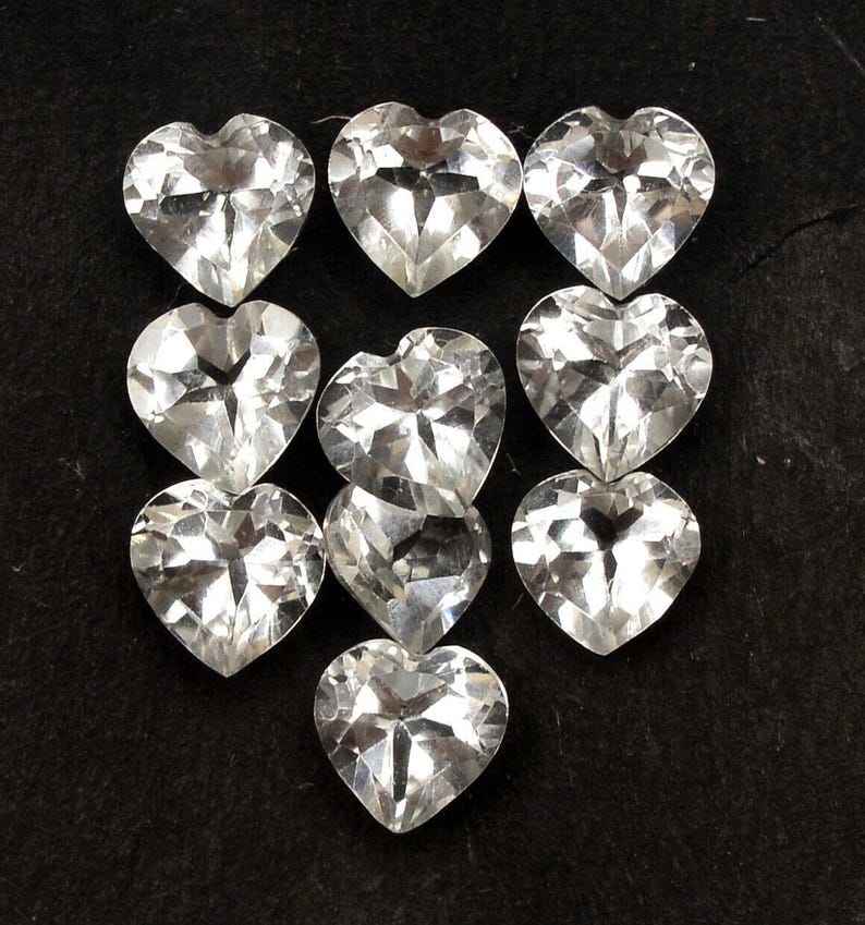โทแพซสีขาวธรรมชาติทรงหัวใจเจียระไนแบบเหลี่ยม ขนาดมาตรฐาน พร้อมใบรับรอง ไม่ผ่านการปรับแต่ง พร้อมสำหรับการฝังในเครื่องประดับ