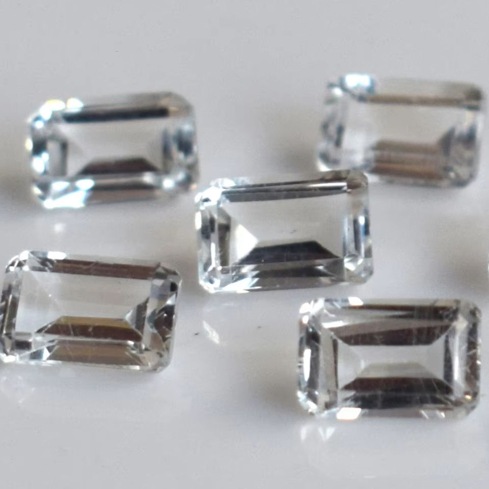 โทแพซสีขาวธรรมชาติทรงแปดเหลี่ยมขนาด 5x7 มม. เจียระไน - โทแพซสีขาวทรงแปดเหลี่ยมคุณภาพเยี่ยมแบบเม็ดเดี่ยว