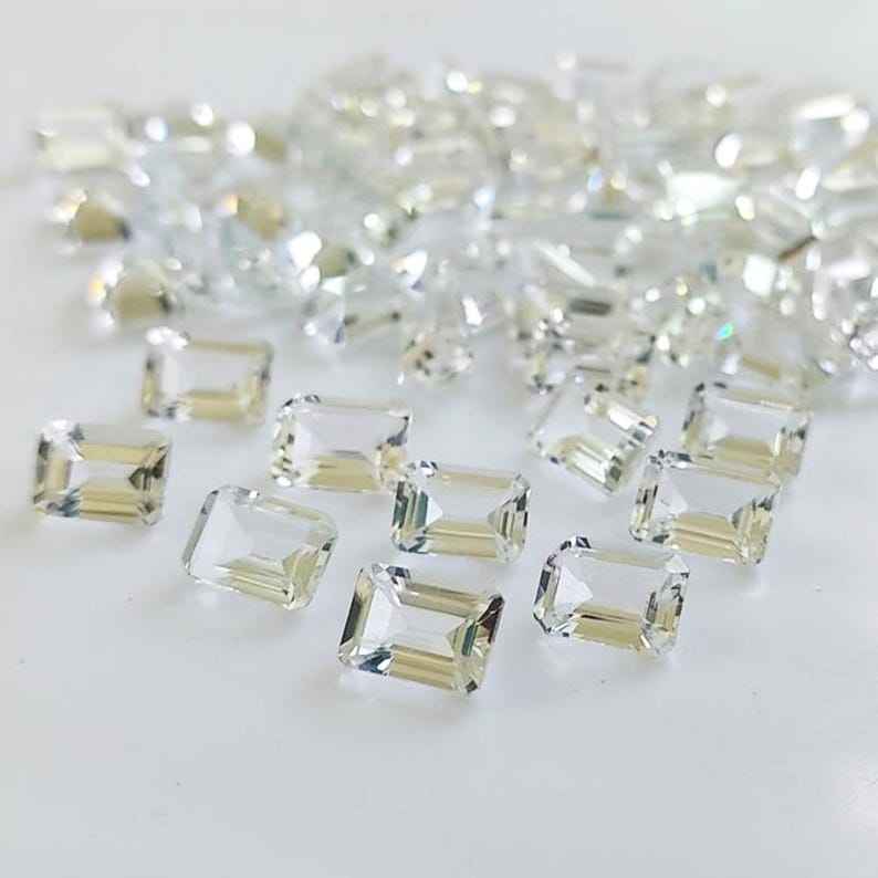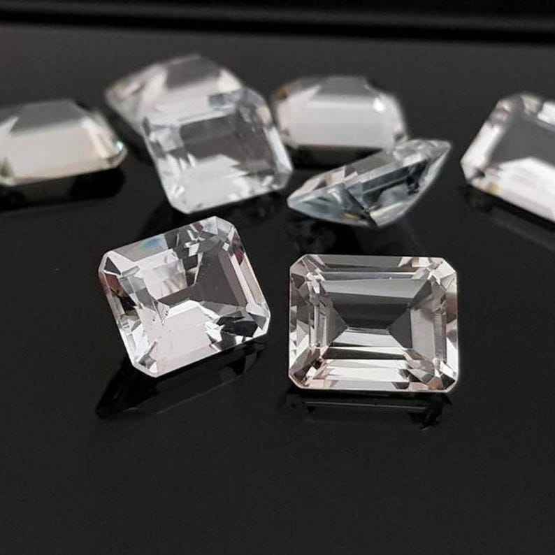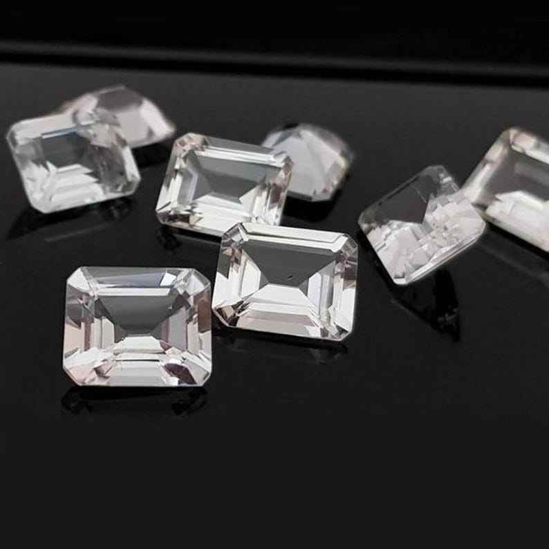 โทแพซสีขาวธรรมชาติทรงแปดเหลี่ยมเจียระไนแบบเหลี่ยมเพชรพลอย ขนาดมาตรฐาน พร้อมใบรับรอง ไม่ผ่านการปรับแต่ง พร้อมสำหรับการฝังในเครื่องประดับ