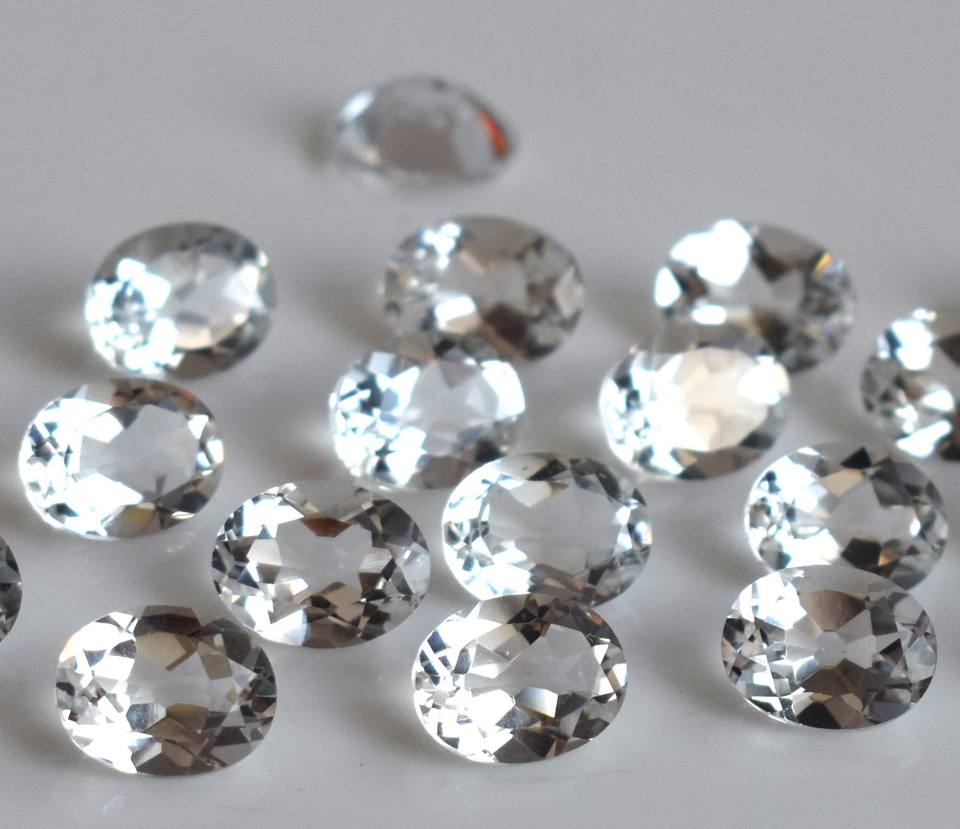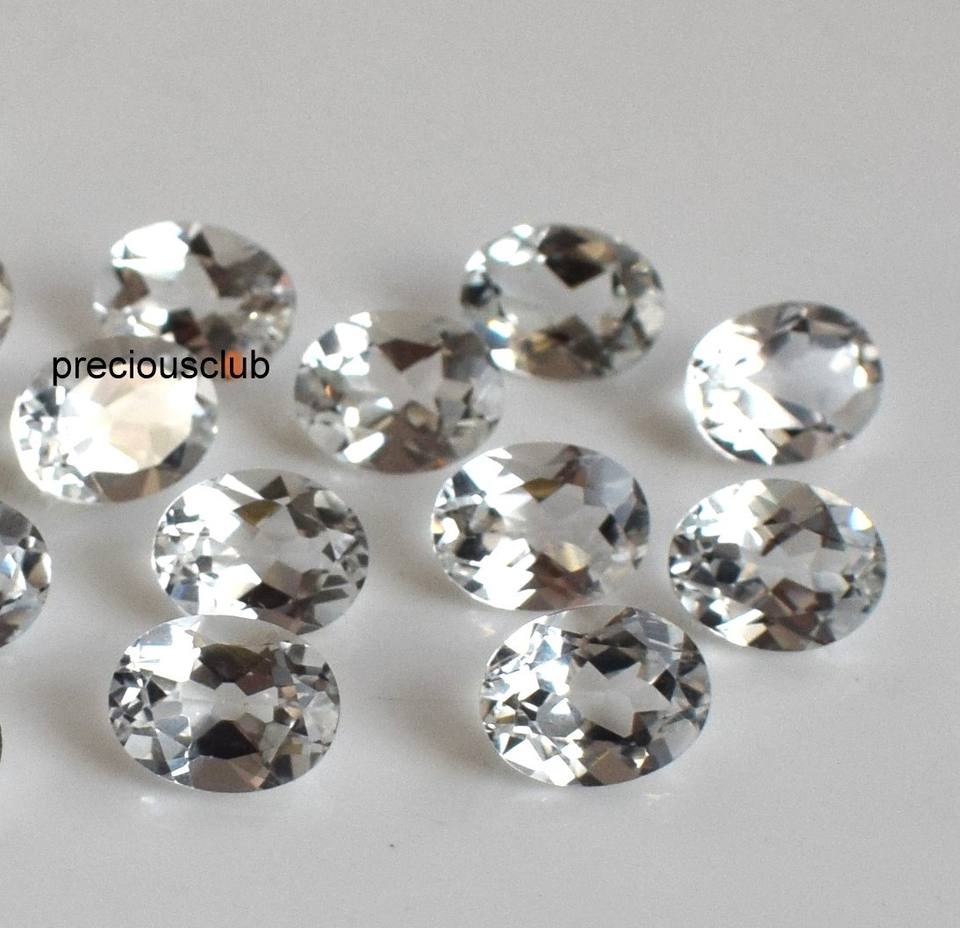 บุษราคัมสีขาวธรรมชาติทรงรีตัดเหลี่ยม3X5มม. พลอยเทียมสีขาวทรงวงรีทรงหลวม