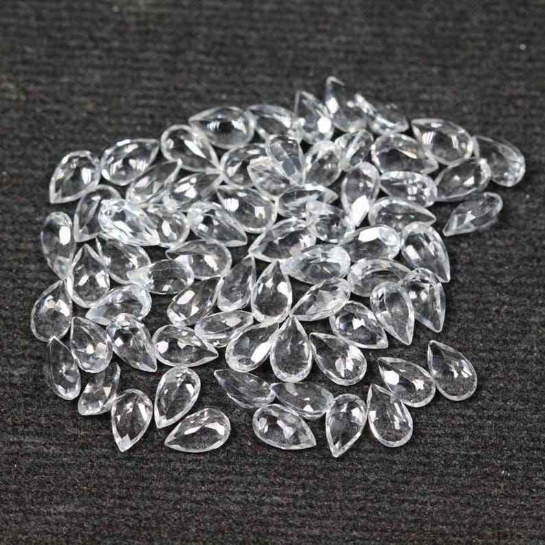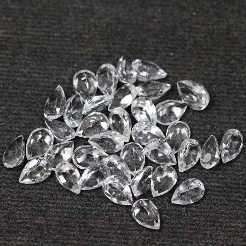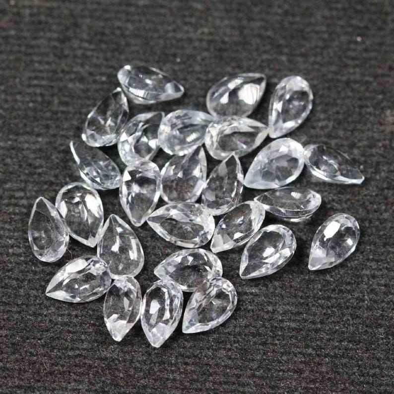 โทแพซสีขาวธรรมชาติทรงลูกแพร์เจียระไนแบบเหลี่ยม ขนาดมาตรฐาน พร้อมใบรับรอง ไม่ผ่านการปรับแต่ง พร้อมสำหรับการฝังในเครื่องประดับ