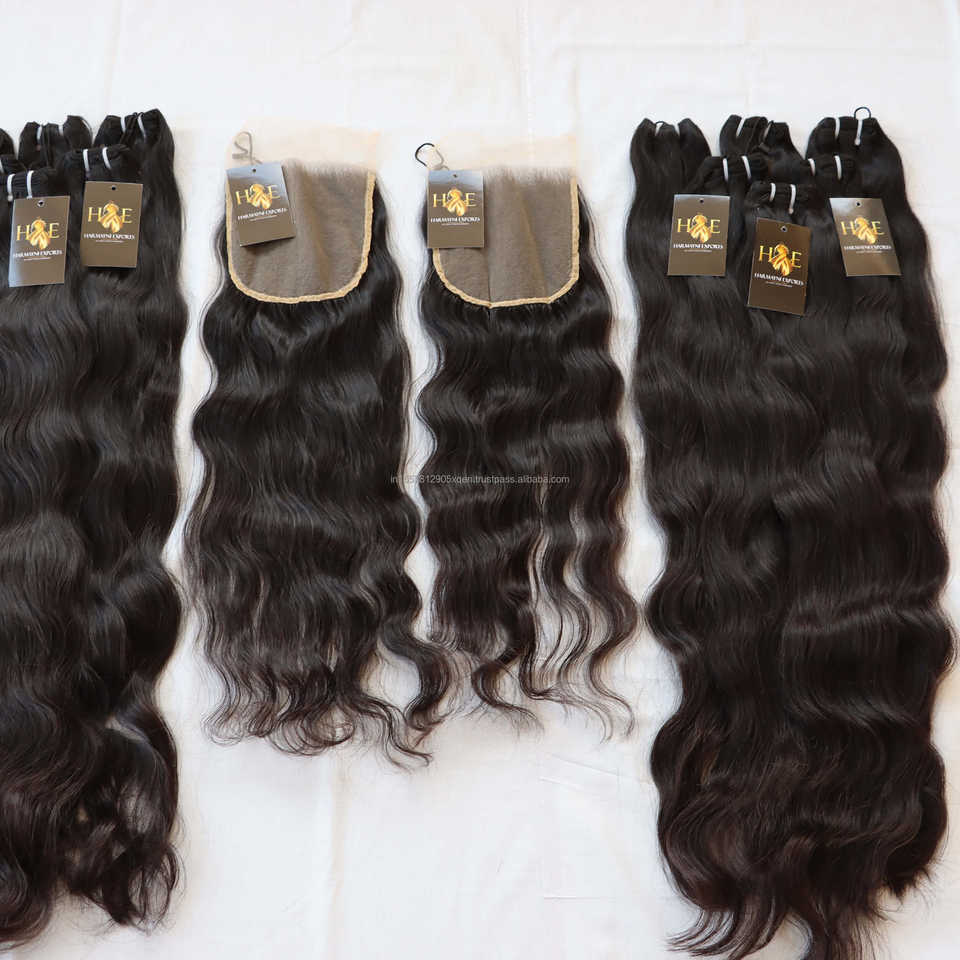 ช่อผมมนุษย์สำหรับผู้หญิงผิวดำผมบริสุทธิ์จากอินเดียพร้อมแผ่นปิดแบบสวิสระดับ HD