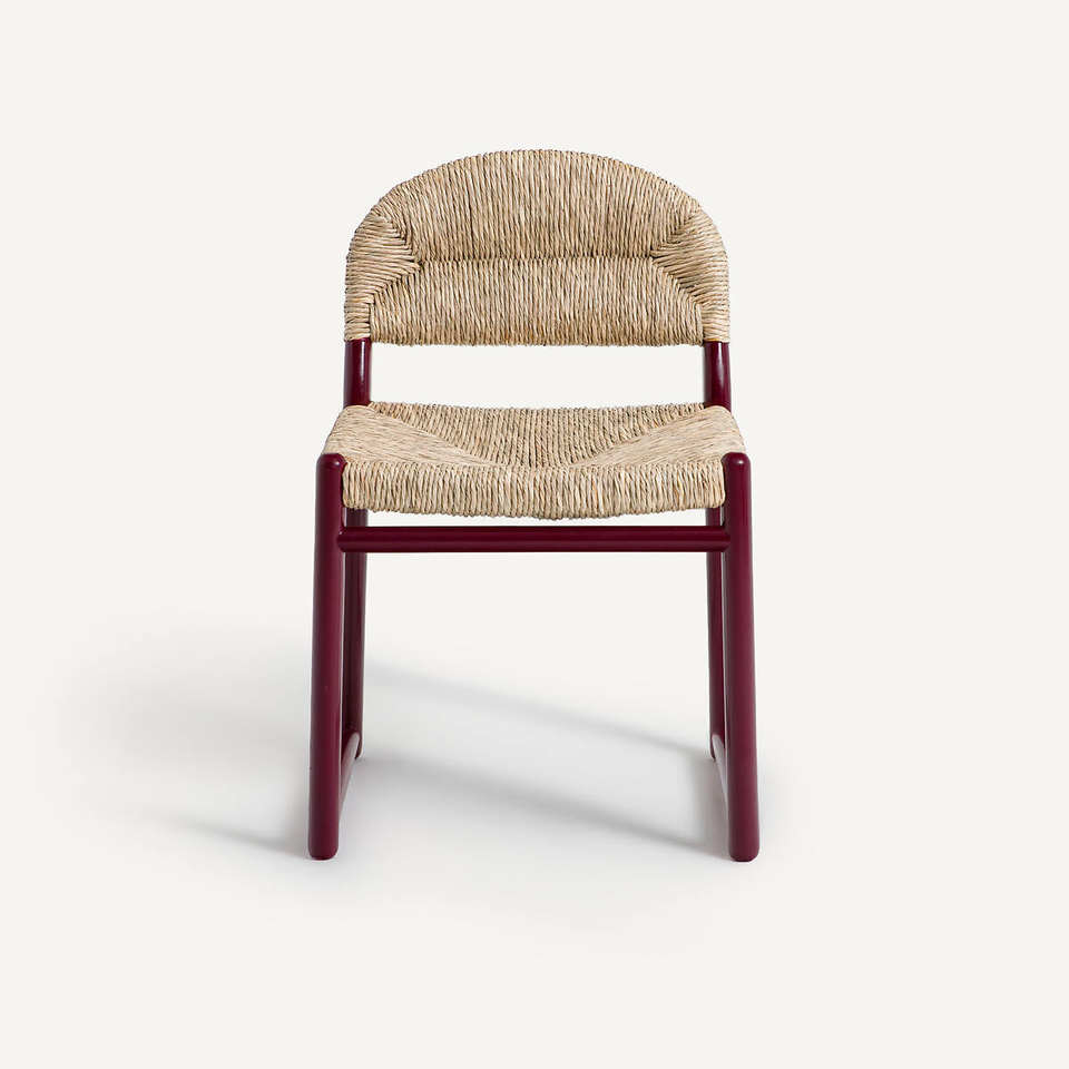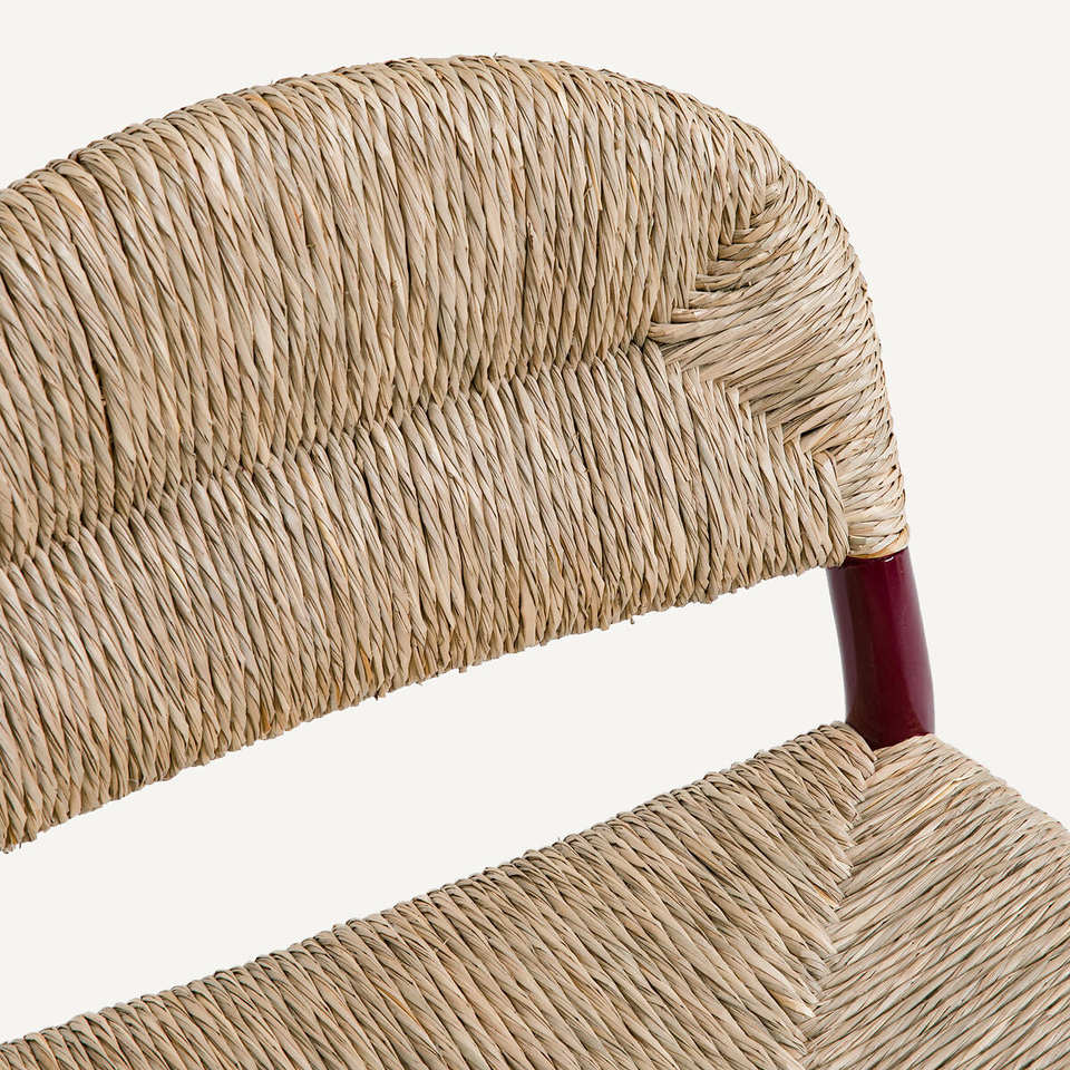 เก้าอี้รับประทานอาหารหวายธรรมชาติ ทำด้วยมือ พร้อมพนักพิงหวายและขาสีแดง สำหรับบ้านและร้านอาหาร
