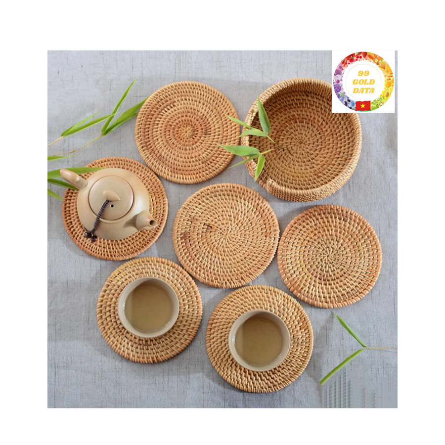 แผ่นรองจานหวายหวายธรรมชาติทรงกลมอุปกรณ์ตกแต่งบนโต๊ะอาหารสำหรับงานแต่งงาน